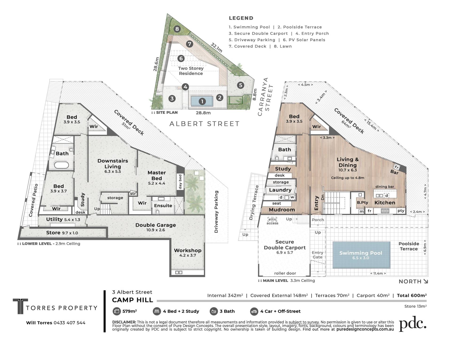 4 Beds 3 Baths 4 Cars Pool Study 579 m2
