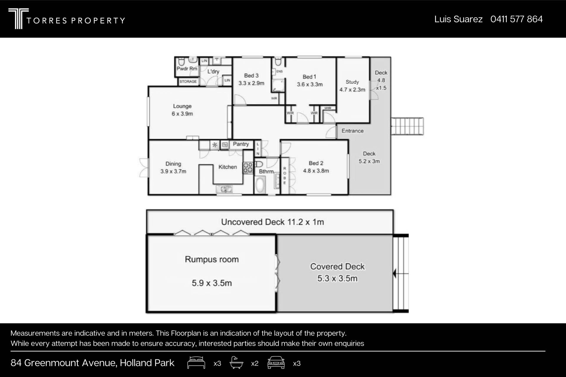 Disclaimer: Whilst every care is taken in the preparation of the information contained in this marketing, Torres Property will not be held liable for any errors in typing or information. All interested parties should rely upon their own enquiries in order to determine whether or not this information is in fact accurate.