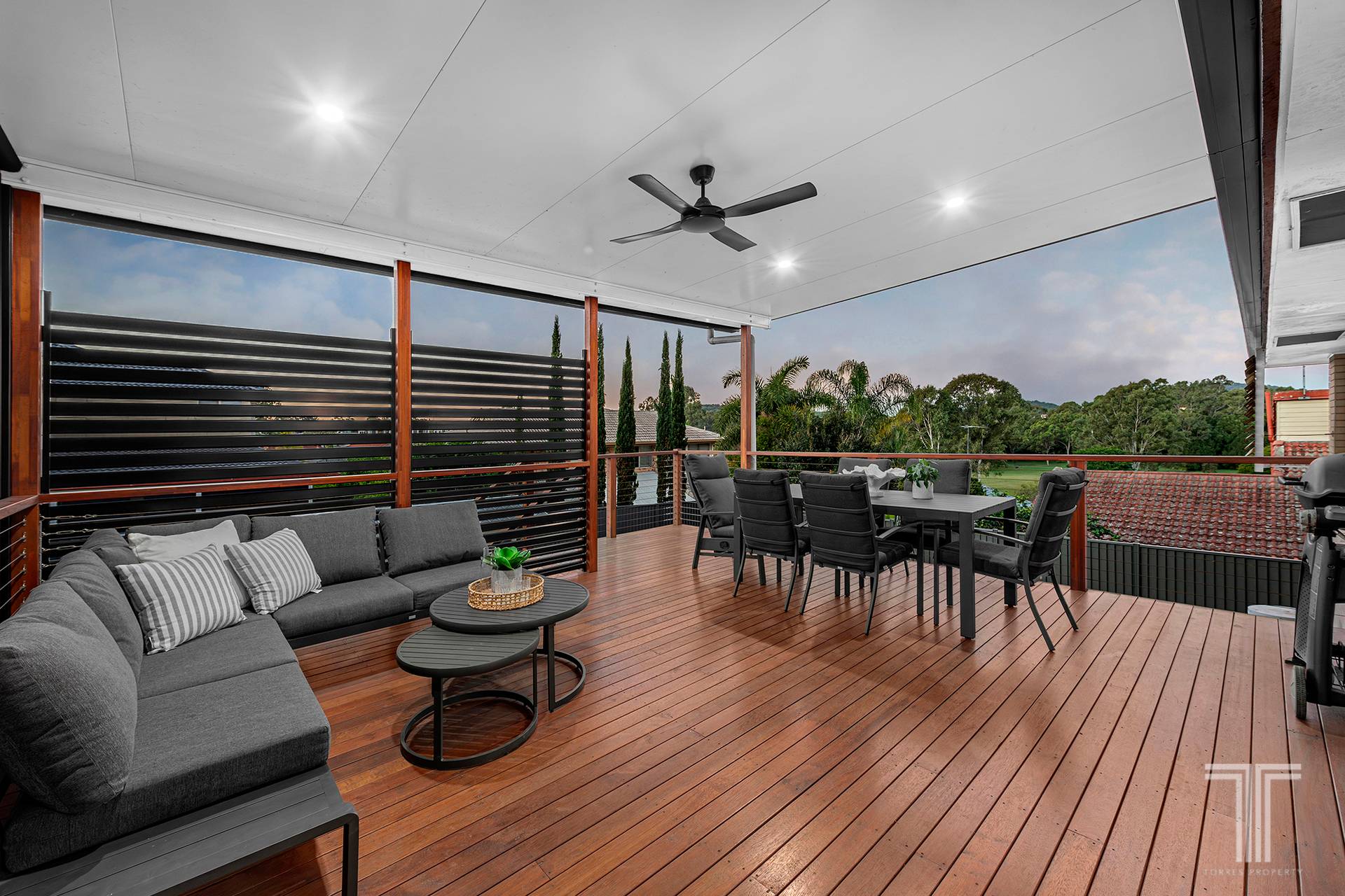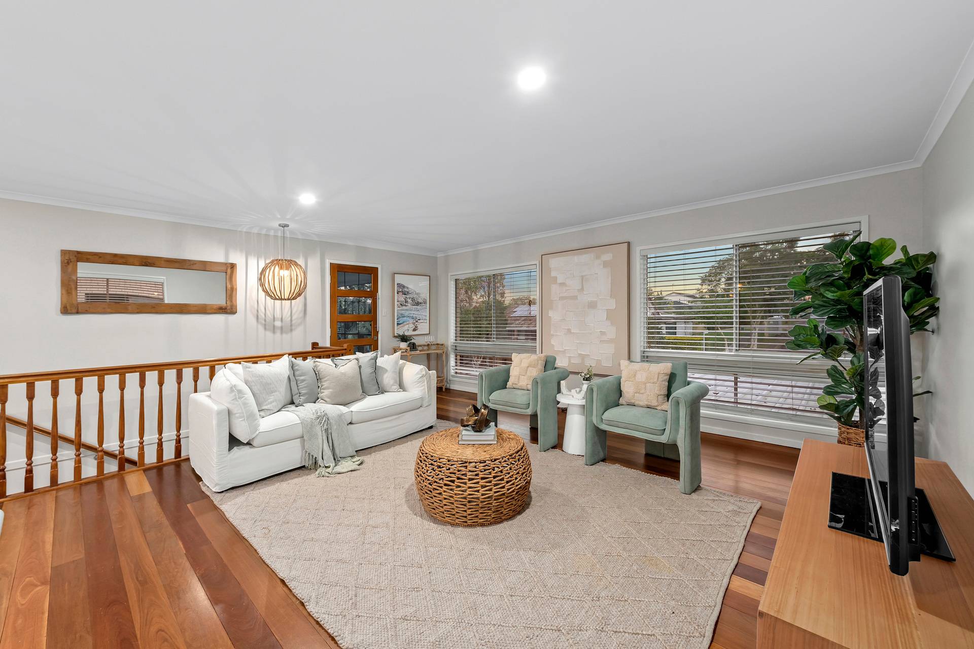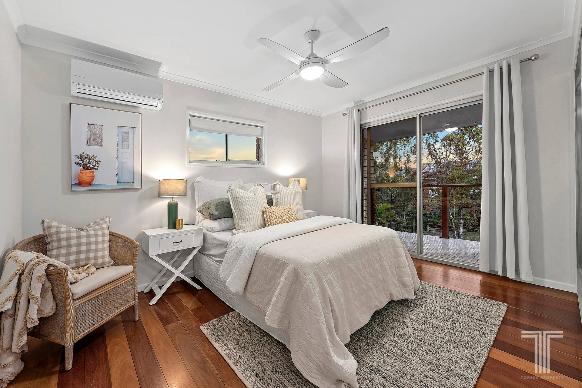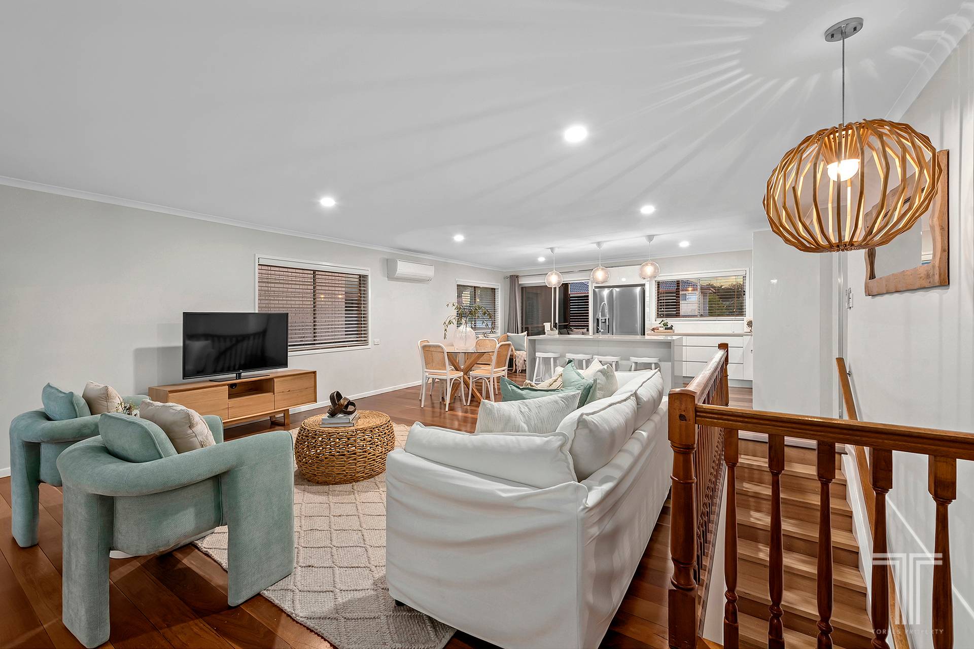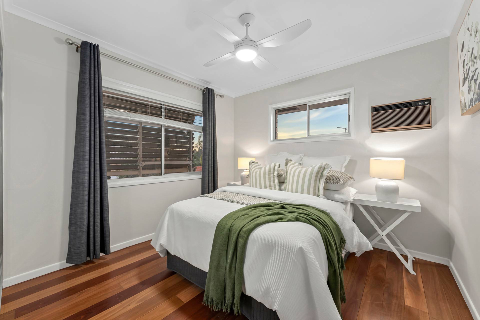 - Timber flooring upstairs, ceiling fans