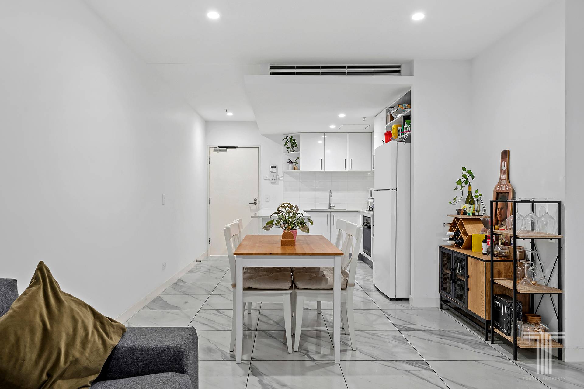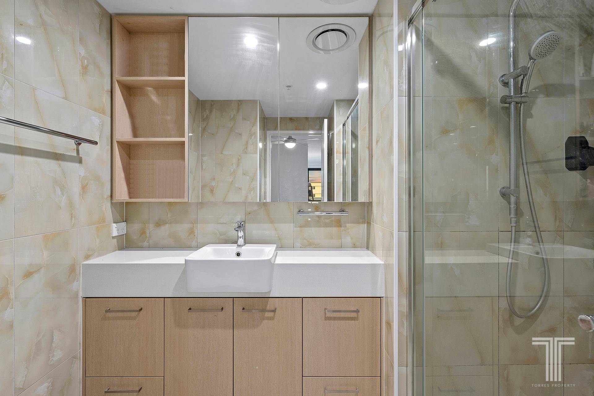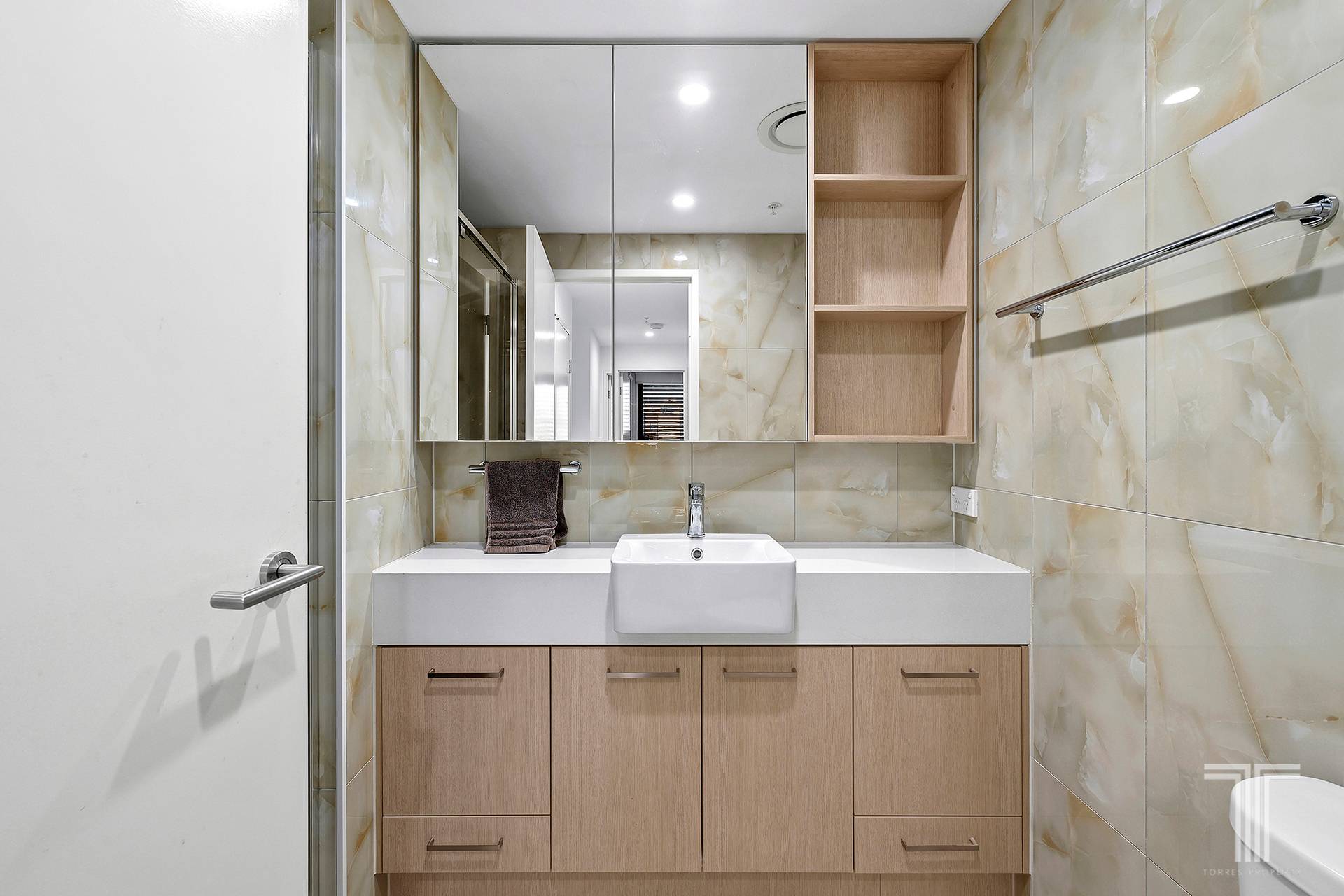 Stylishly adorned with LED lights, sleek tiles and floor-to-ceiling glass, the apartment maximises its eastern outlook and draws beautiful sunshine and calming leafy outlooks across the executive floor plan.