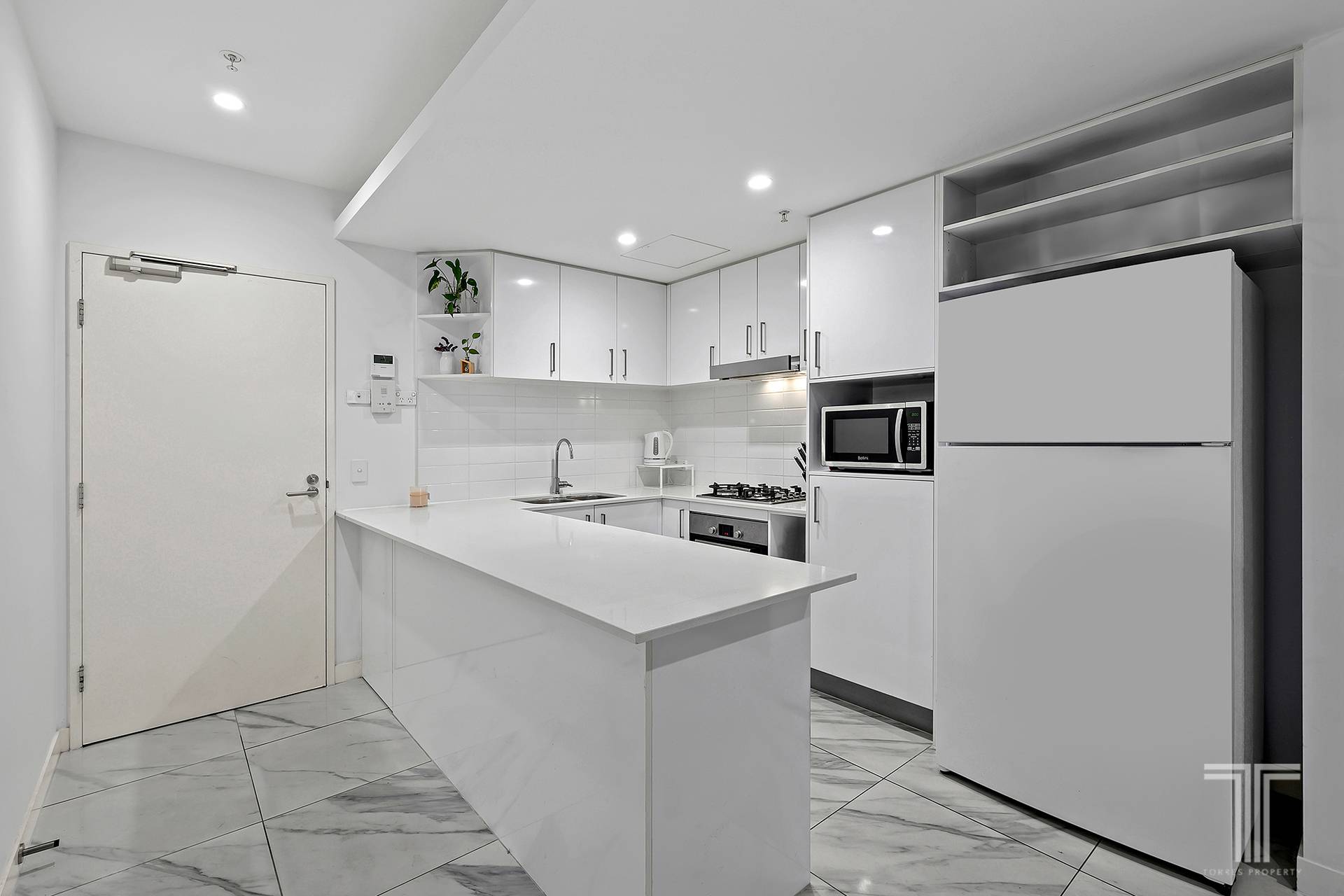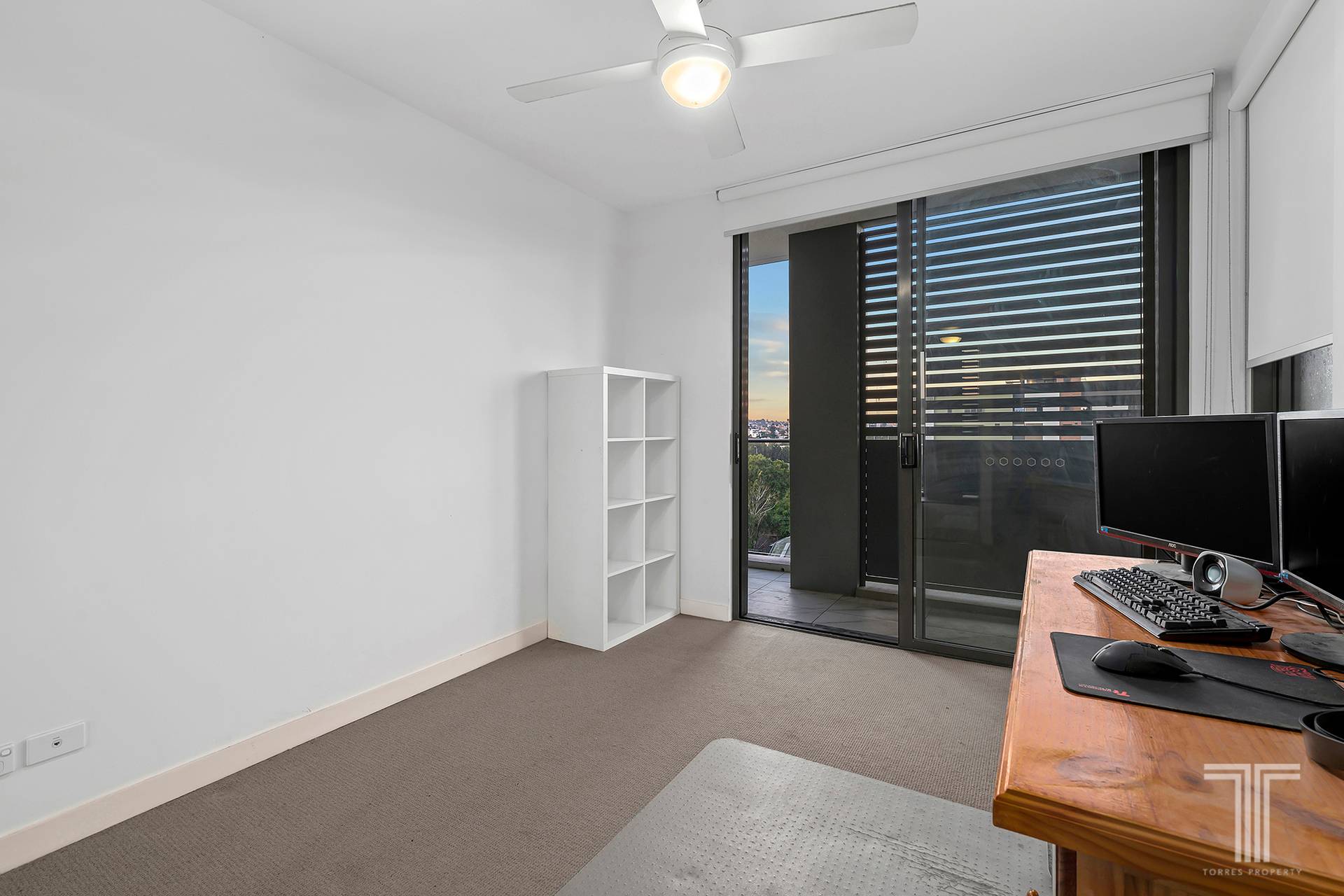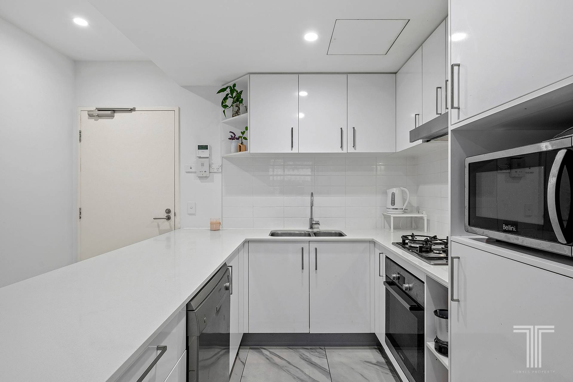 Stylishly adorned with LED lights, sleek tiles and floor-to-ceiling glass, the apartment maximises its eastern outlook and draws beautiful sunshine and calming leafy outlooks across the executive floor plan.