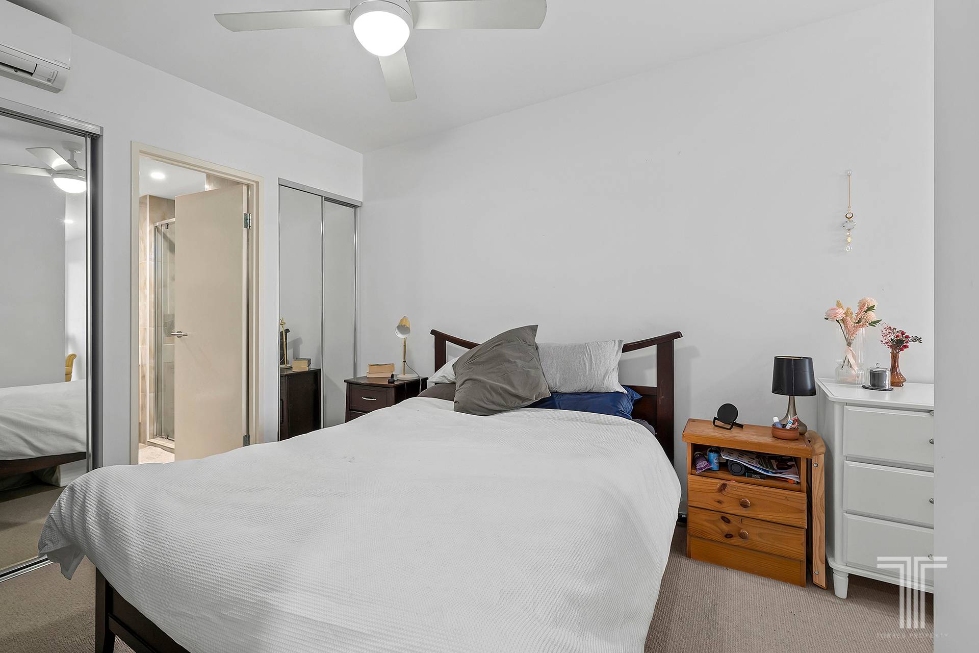 There are two bedrooms, two stylish bathrooms, and a concealed laundry. Both bedrooms feature balcony access and built-in robes, and the master boasts an ensuite. A secure car space and a storage cage complete the layout.
