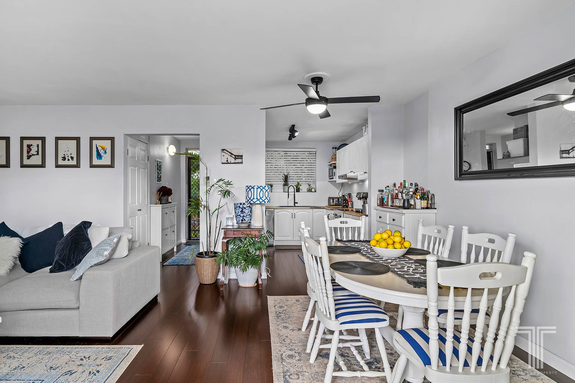 The bright, breezy interiors host a living/dining area with timber floors, air-conditioning, and a lovely leafy vista. The far-reaching views continue on your private balcony, where you can sit, sip, and relax while enjoying the sweeping sights over the treetops and city skyscrapers in the distance.