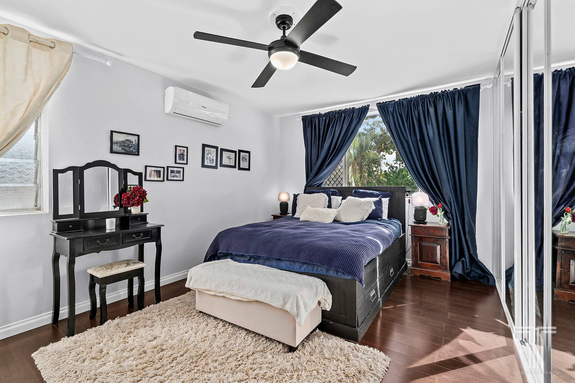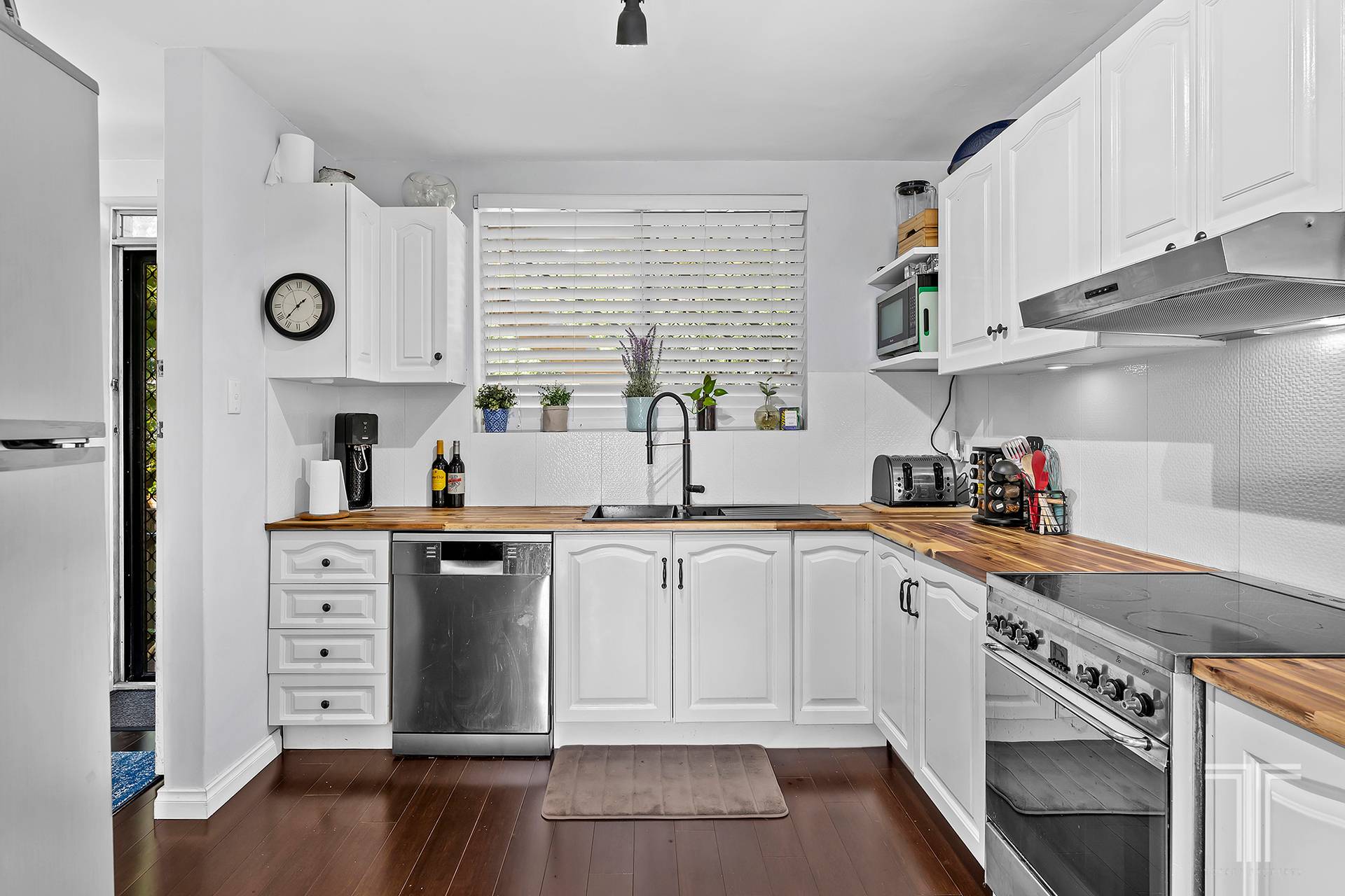 The functional kitchen includes timber benchtops and stainless steel appliances for easy cooking. Two bedrooms, one bathroom, and a lock-up garage finalise the design. One bedroom includes a built-in robe, and the other boasts a walk-in robe and air-conditioning.