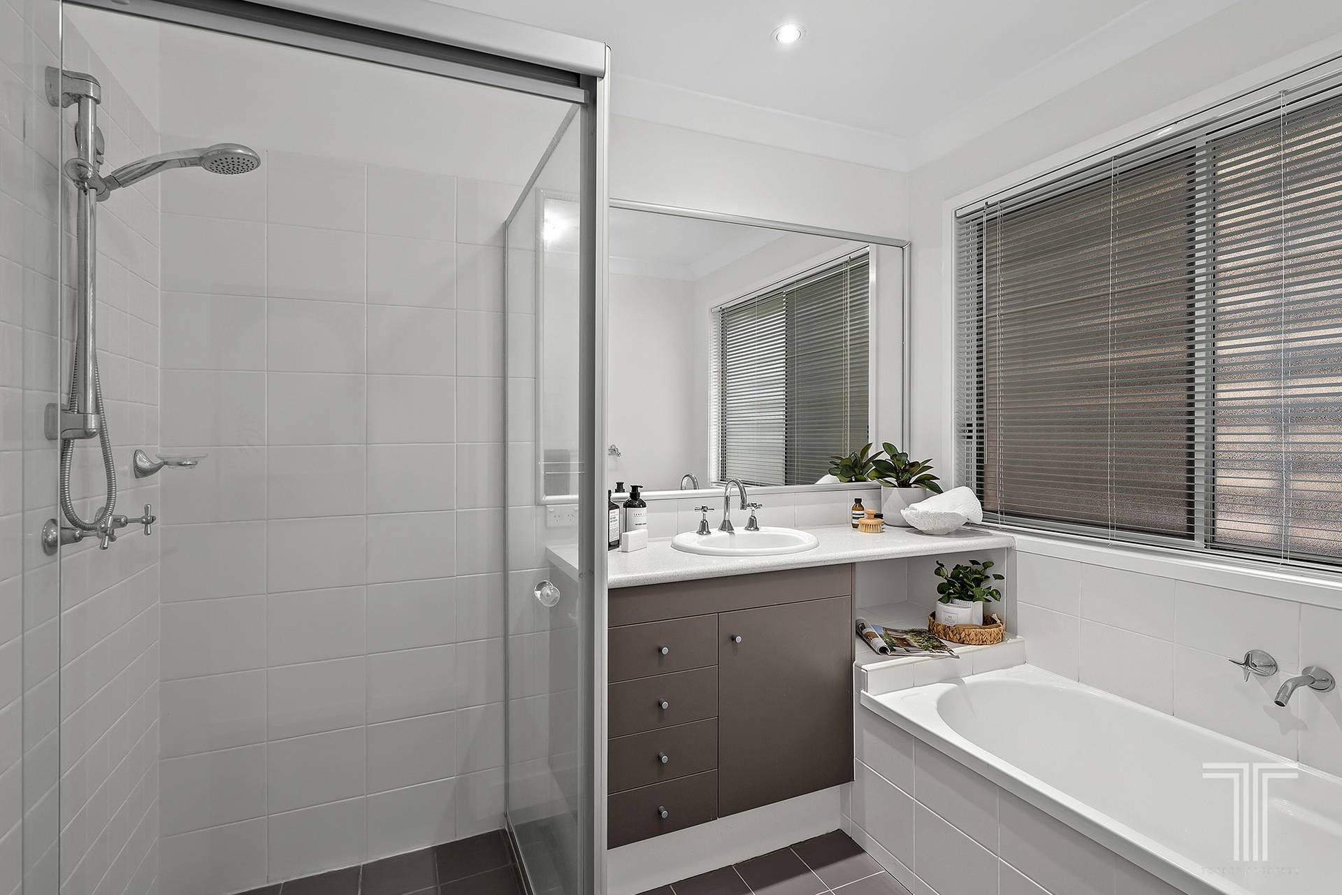 Upstairs, there is a study nook and three large bedrooms, and two bathrooms, including a master with an ensuite. An additional powder room, laundry, and two-car parking finalise the design.