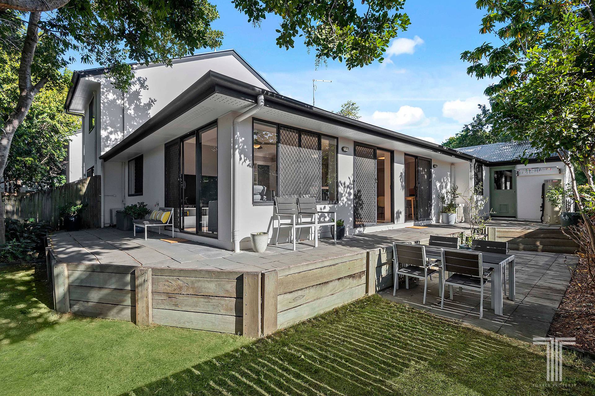 Stepping out to a paved retreat and a huge courtyard nestled under soaring trees, this leafy hideaway is ideal for outdoor living, alfresco BBQs, and fun with kids and pets.