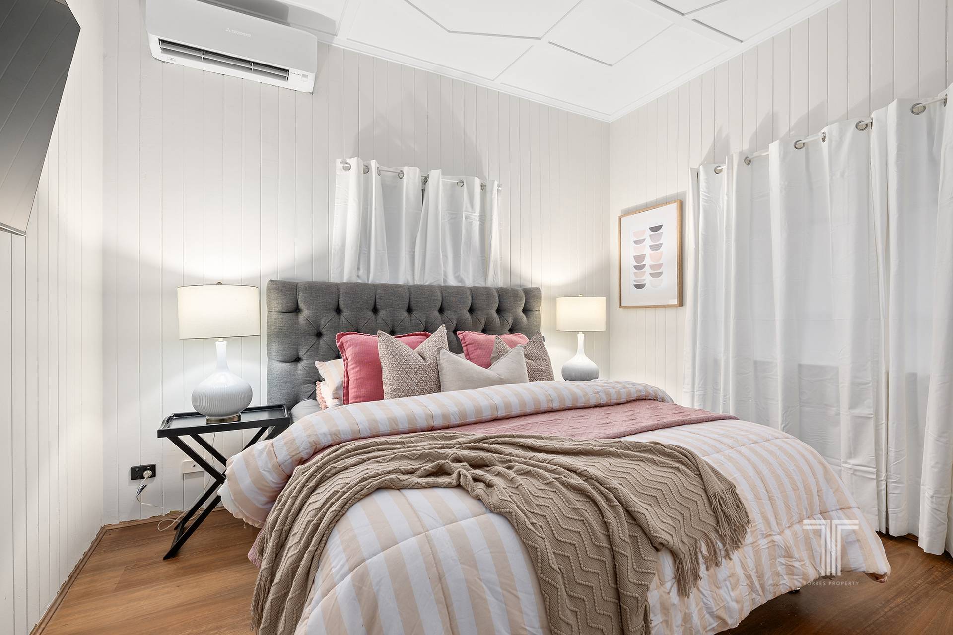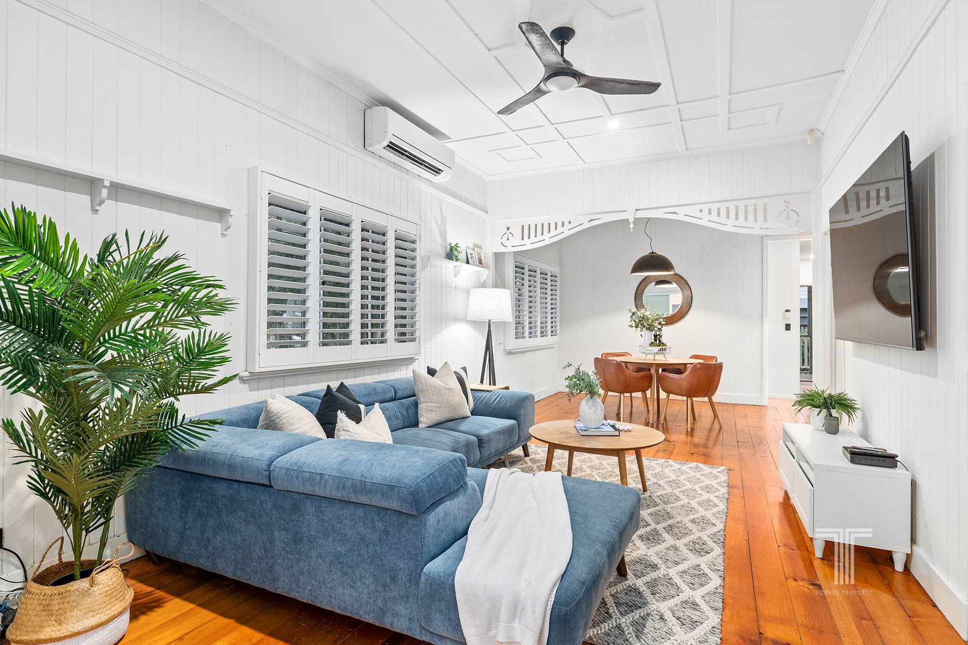 Presenting turn-key living, the period property has undergone updates and refreshes with a signature light shade and air-conditioning complementing the timeless timber floors, VJ walls, high ceilings, traditional fretwork and plantation shutters.