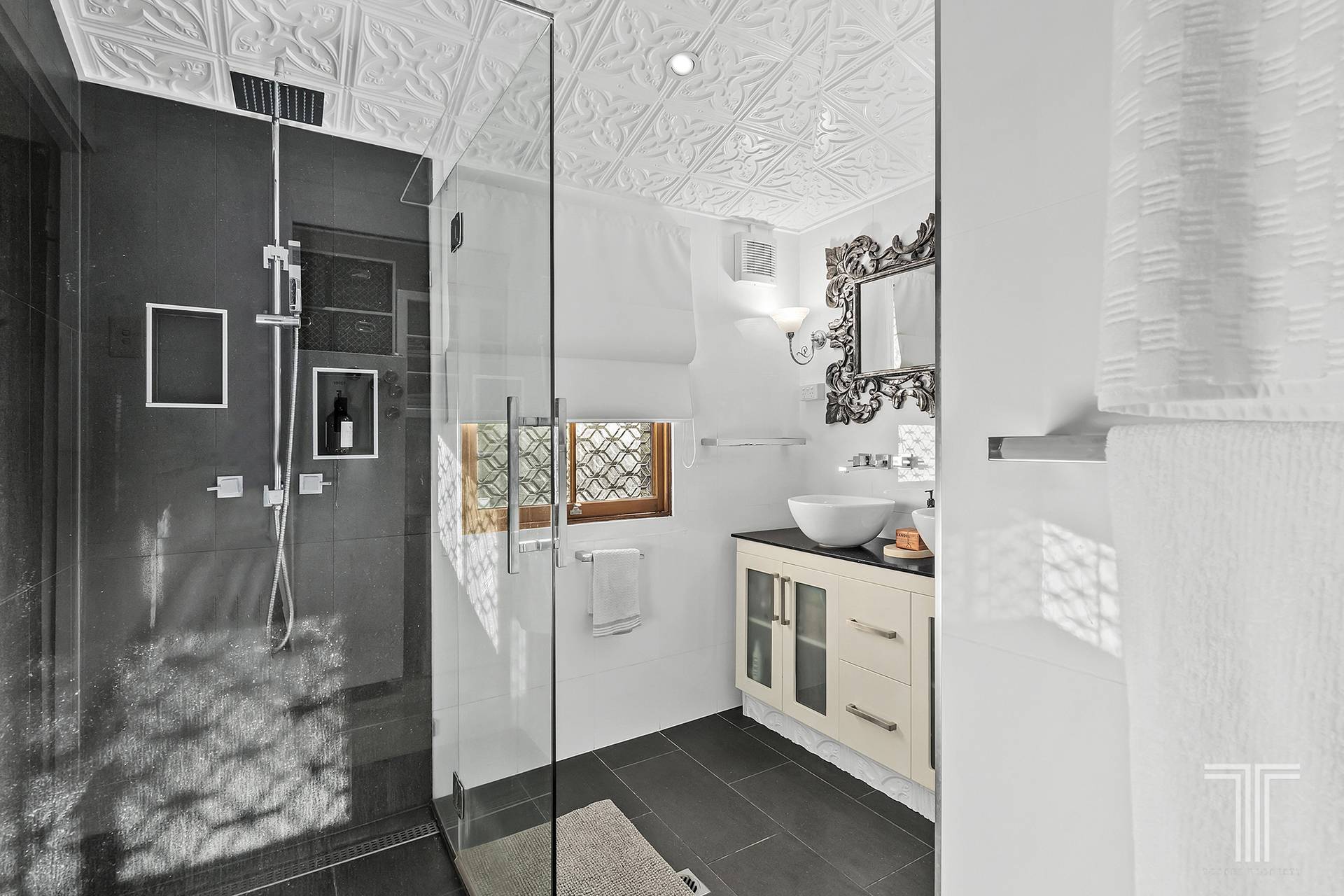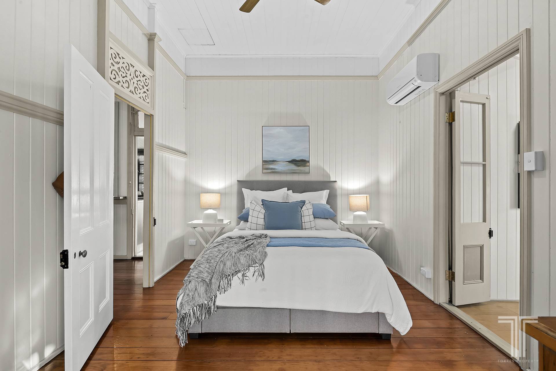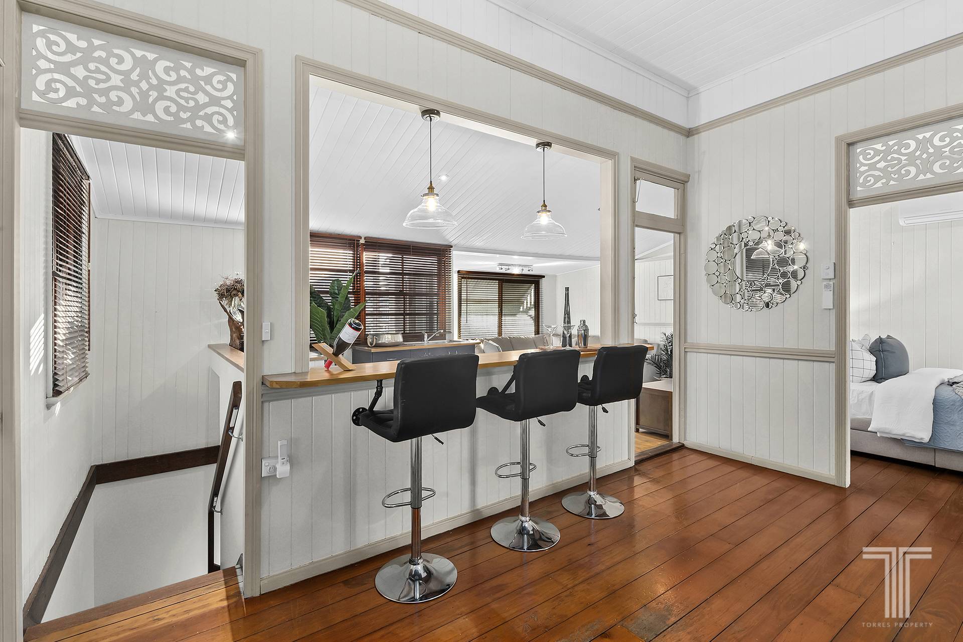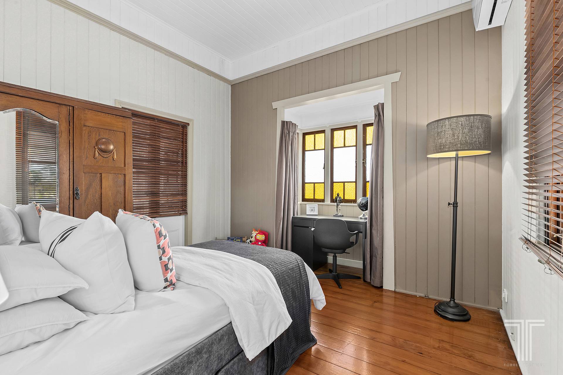 Traditional timber floors, high ceilings and VJ walls adorn the upper level, and the entire house has been refreshed with stylish updates and air-conditioning.