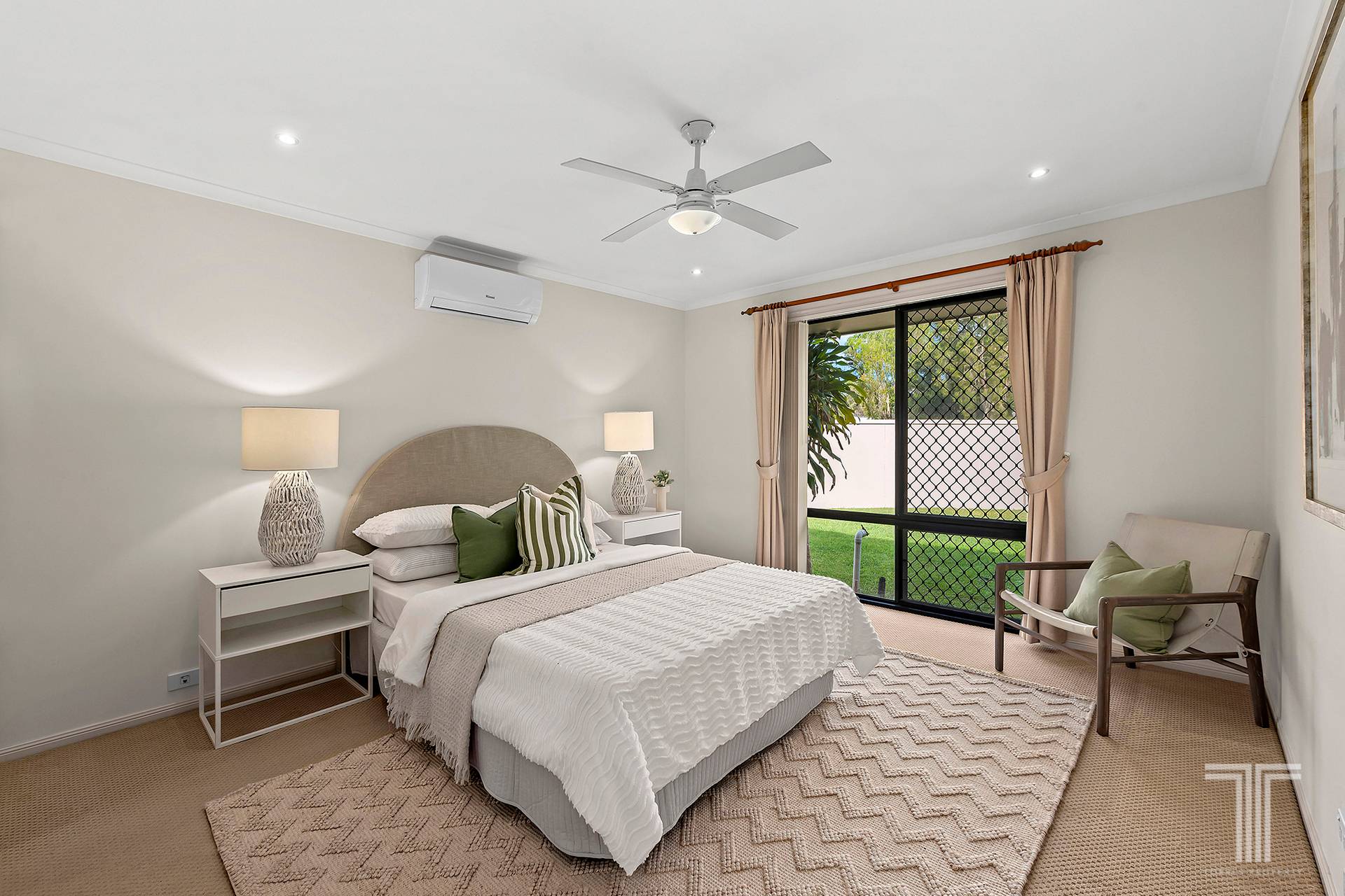 - Ceiling fans and security screens throughout