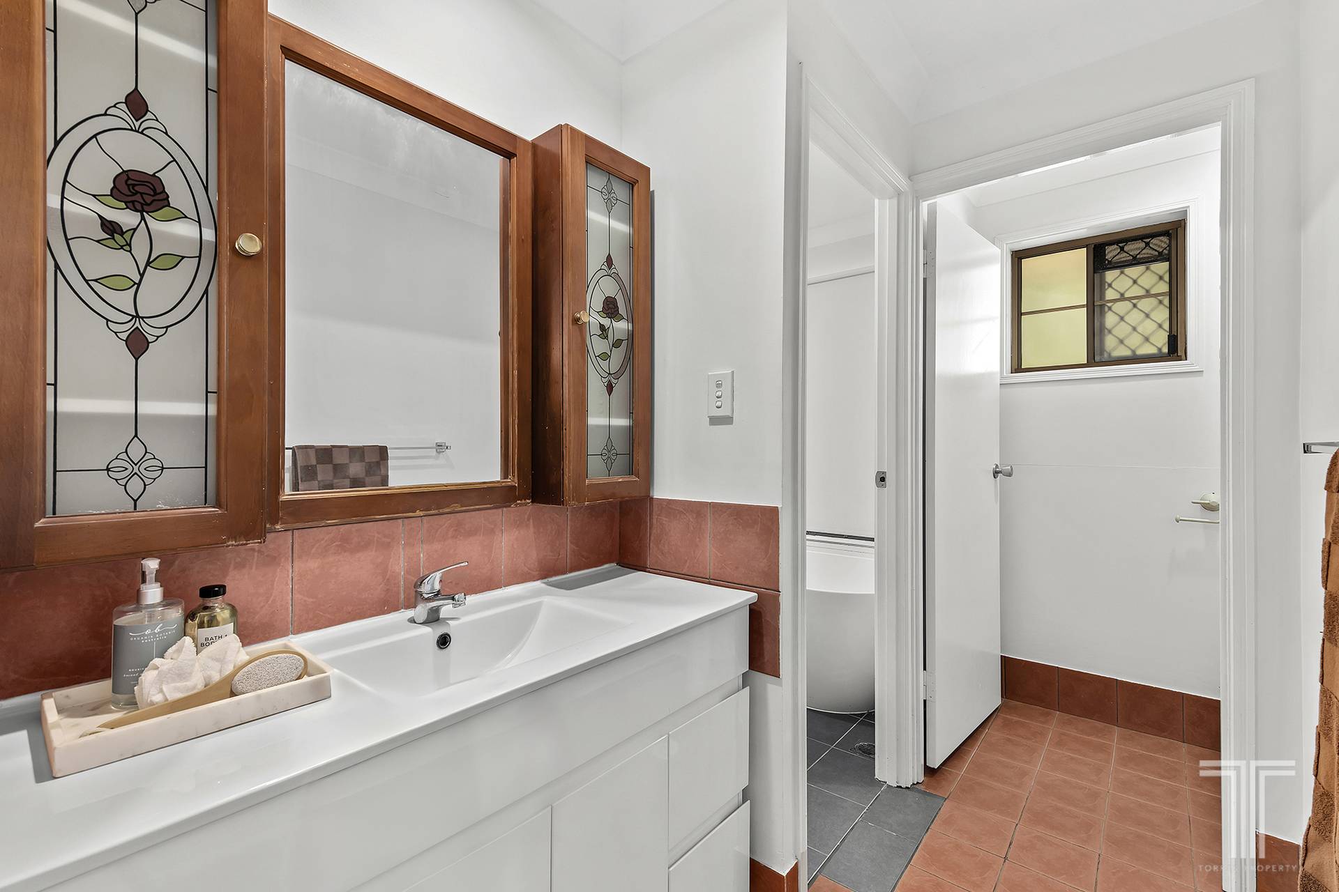 Designed across a single spacious level, the brick and tile house features beautiful French windows, decorative cornices, ceiling roses, and bottle green brush strokes.