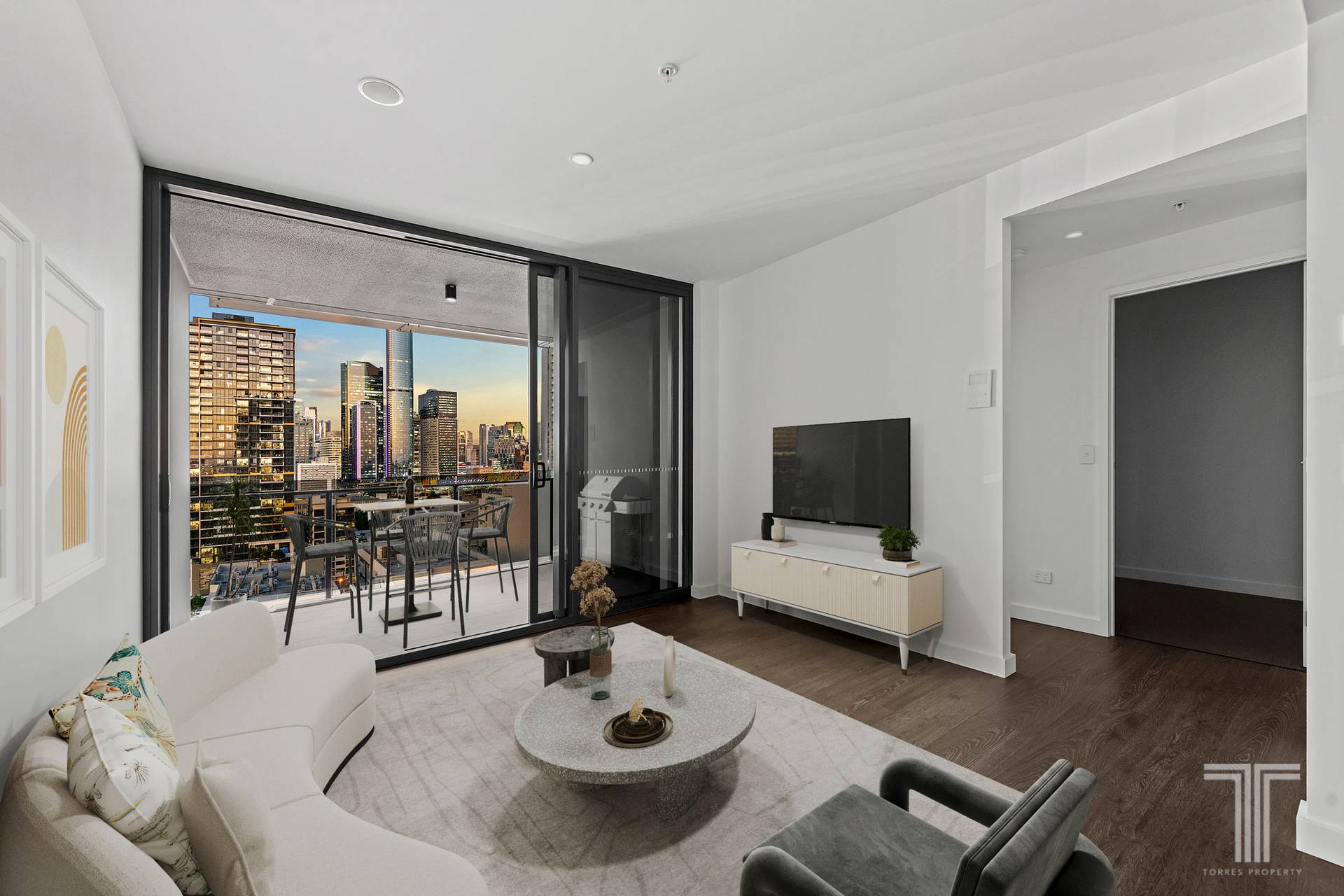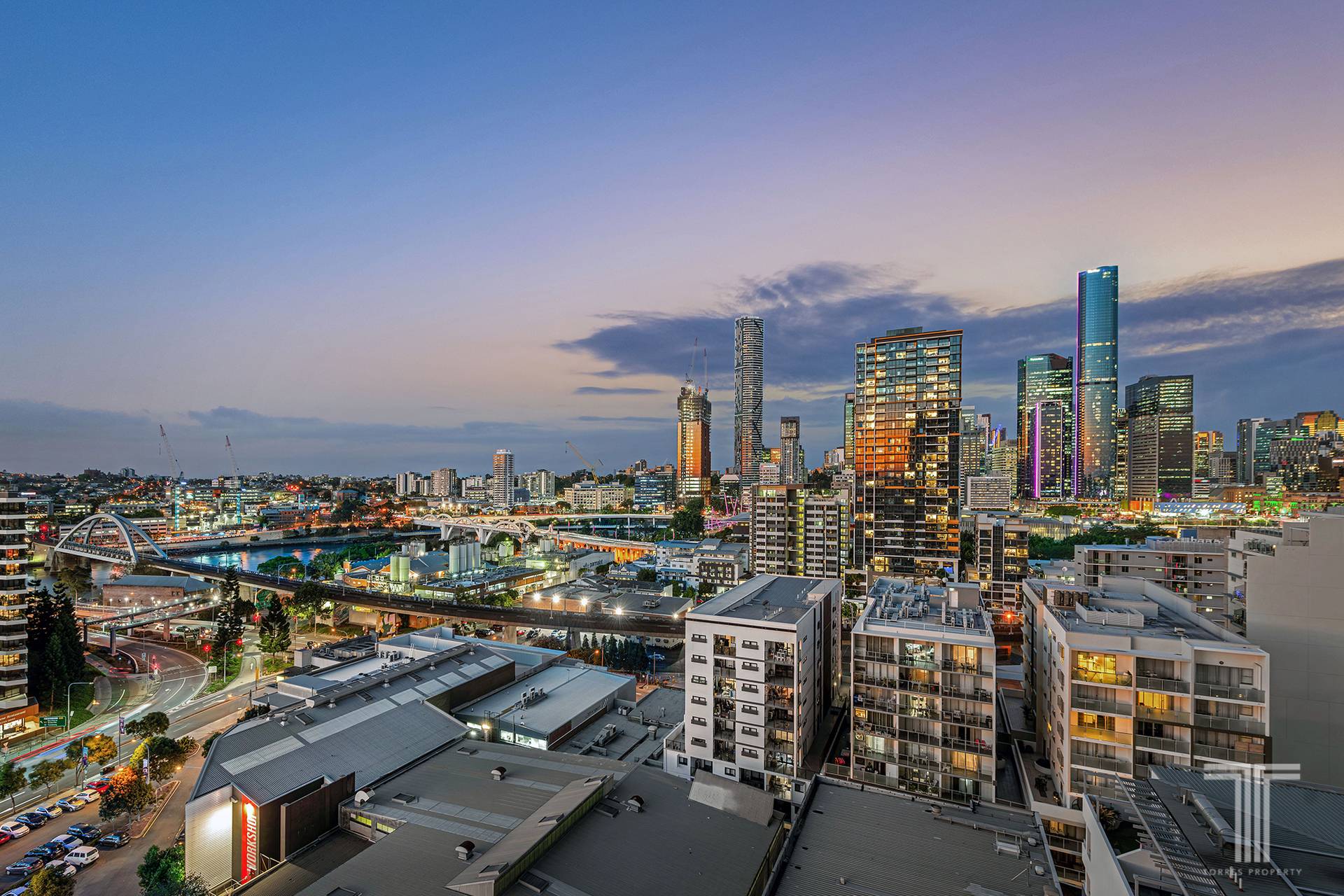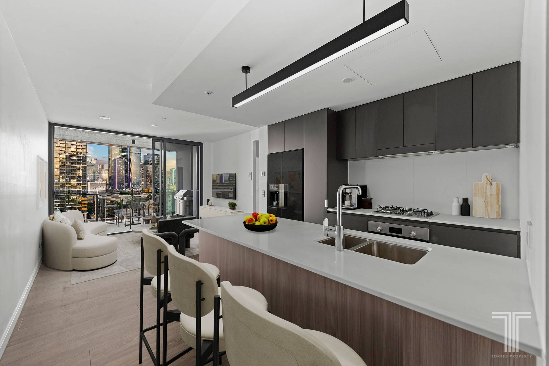 Featuring a linear layout, full-height glazing separates the modern kitchen and living area from the entertainer's balcony and frames enchanting outlooks that stretch from the city to the Brisbane River and bridges. A mesmerising backdrop that truly inspires, you will love watching the skyline transform as the skyscrapers illuminate with sunlight, evening light displays and changing hues at dawn and dusk.
