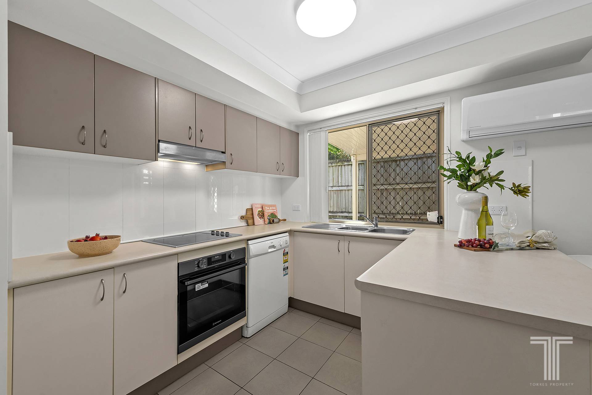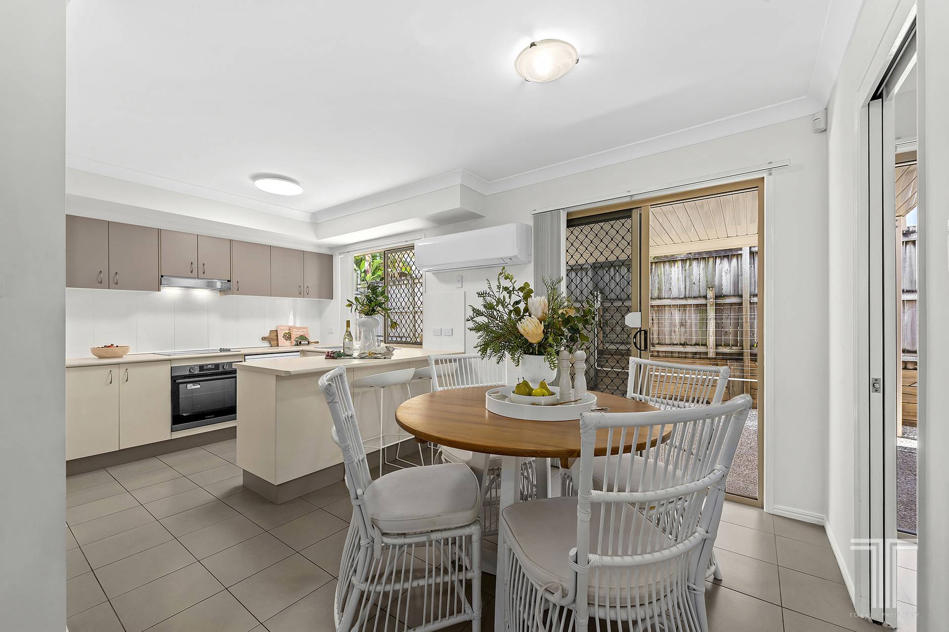The living and alfresco spaces are arrayed on the ground floor, allowing for seamless transitions between lounging, sharing meals and entertaining. The living and dining area is air-conditioned and appointed with tiled floors, and the kitchen features a breakfast bar, electric stove, stainless steel oven and good storage.