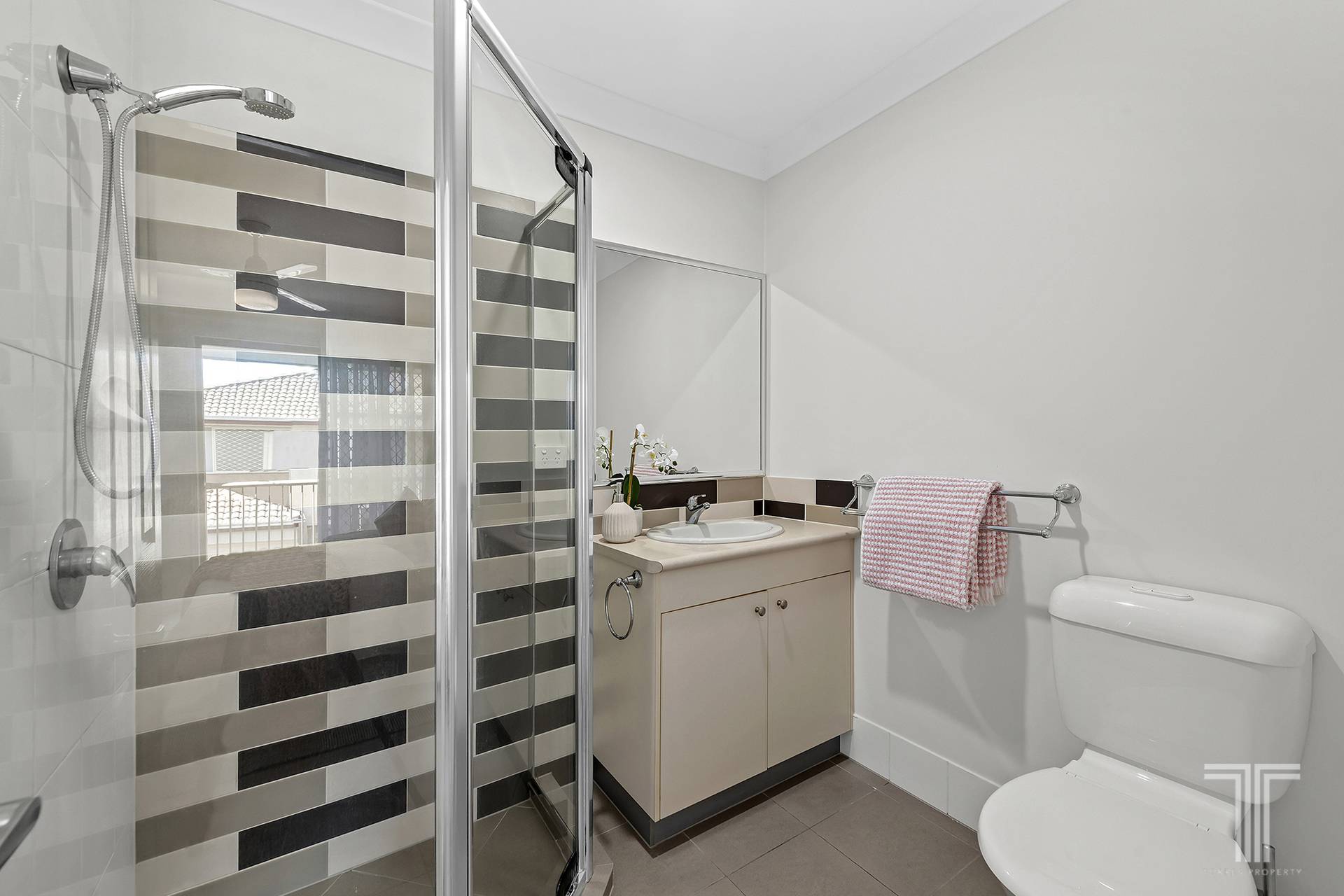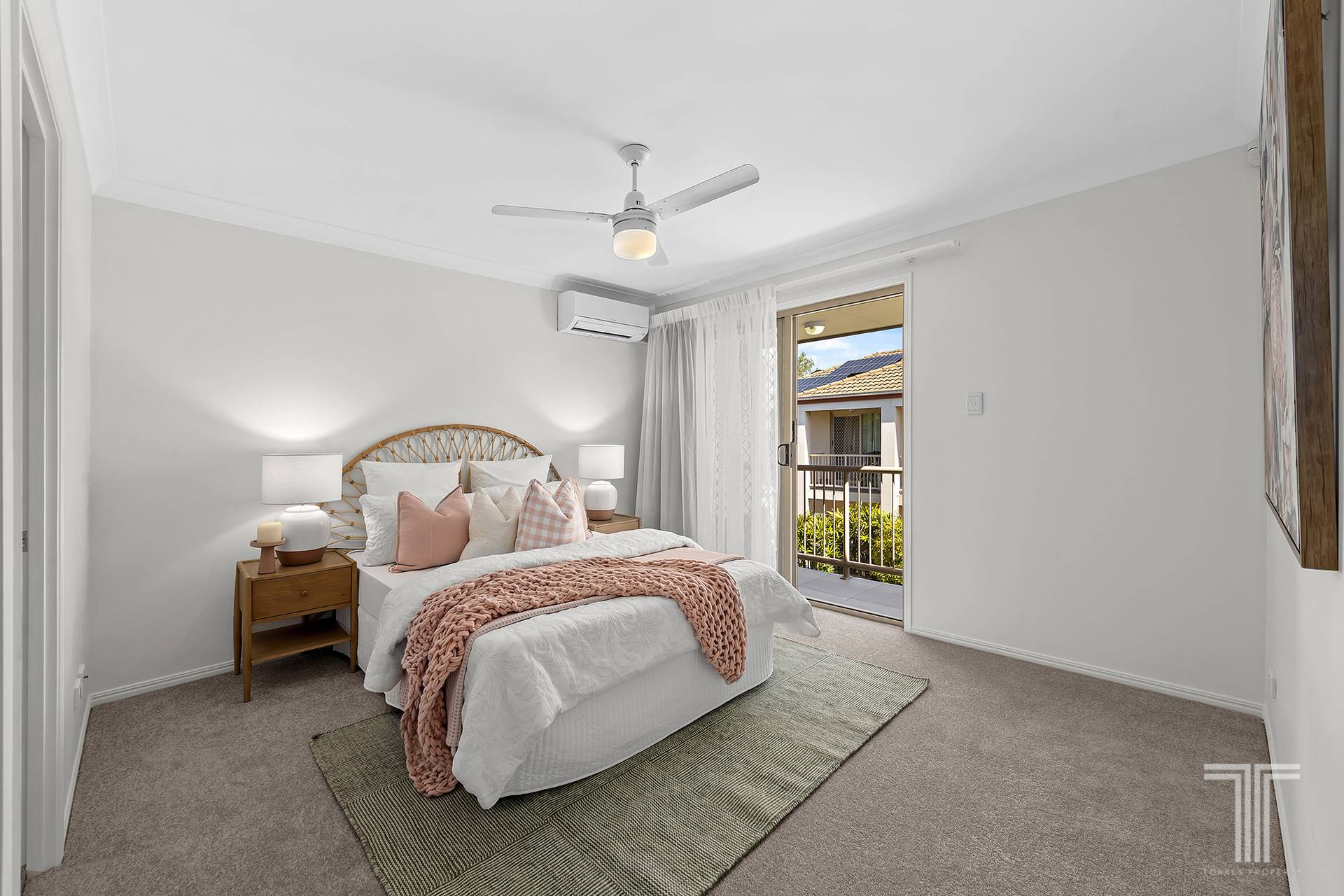 Enjoy the separation and elevation provided by the three air-conditioned upstairs bedrooms. You can wake to peaceful views each morning in the master suite, which features a walk-in robe, a modern ensuite, and a private balcony for your morning coffee. A second stylish bathroom on this floor includes a bathtub and a separate toilet, and an additional toilet and laundry reside downstairs.