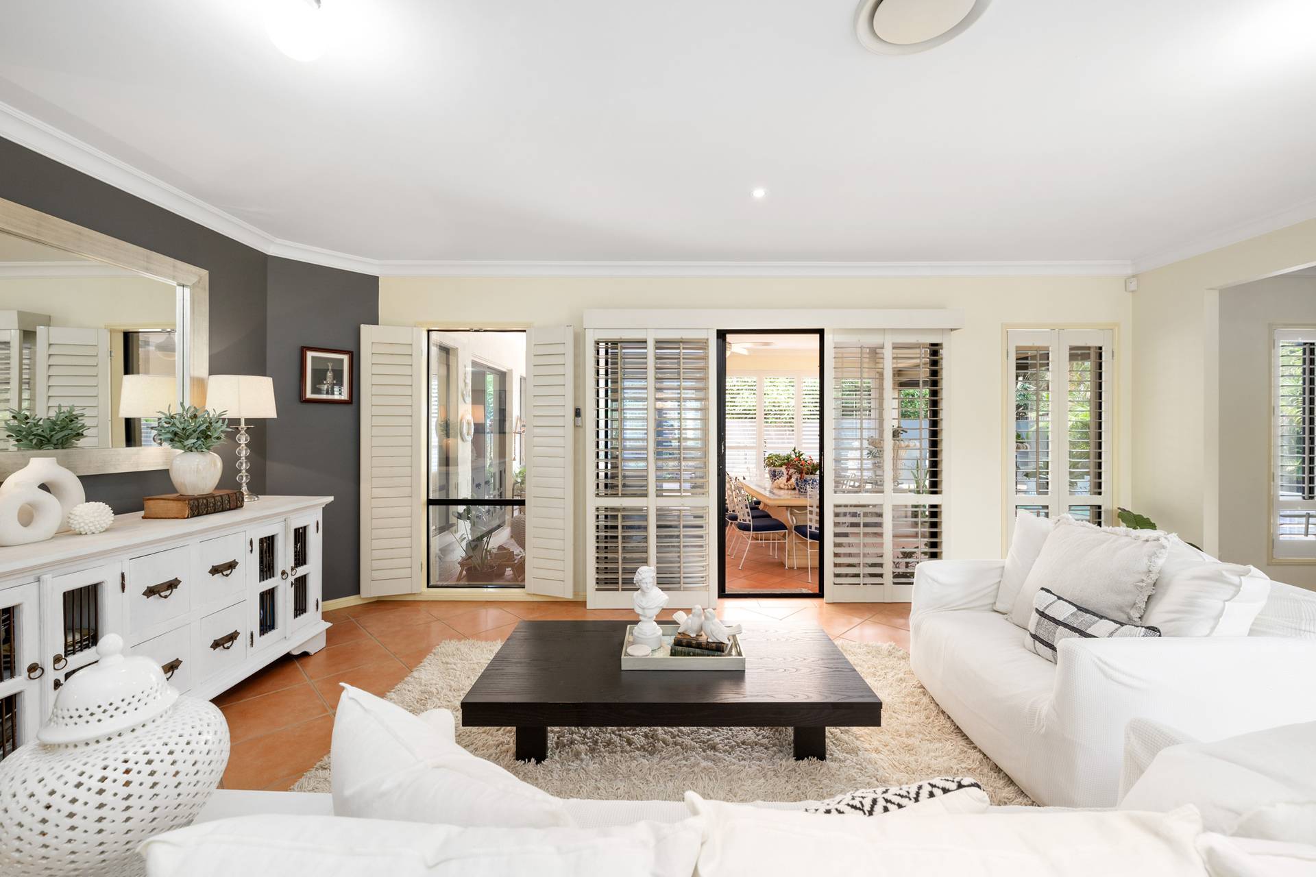 Immaculately maintained and updated by its sole owners of 20+ years, the brick home features a high-calibre build and versatile five-bedroom-plus-office design with multiple family areas, sun-drenched garden spaces, and an all-weather poolside pavilion.