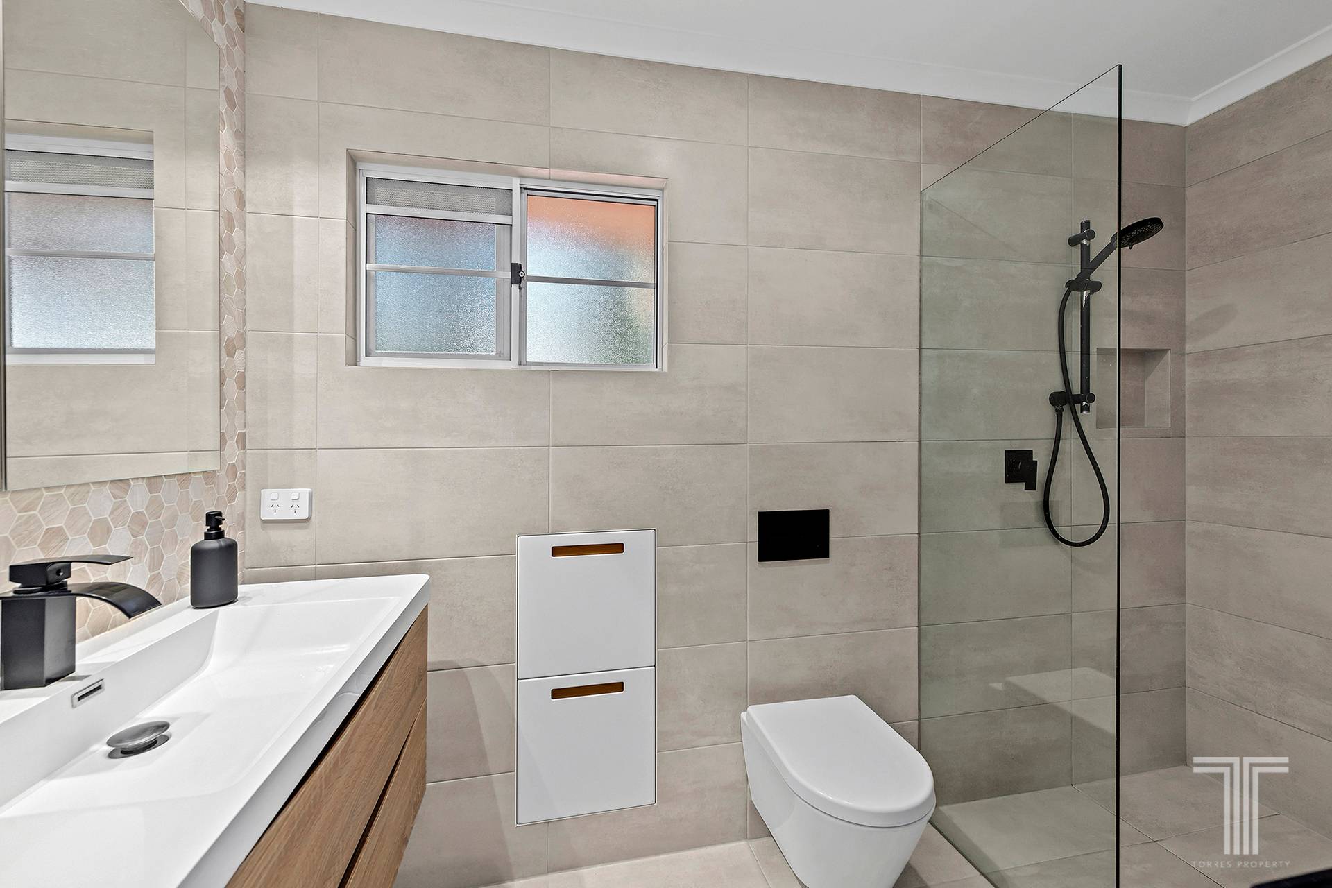 All three bedrooms upstairs feature fully fitted-out wardrobes, including the master suite with a private balcony, ensuite and walk-in robe. A second stylish bathroom and third toilet service the home.