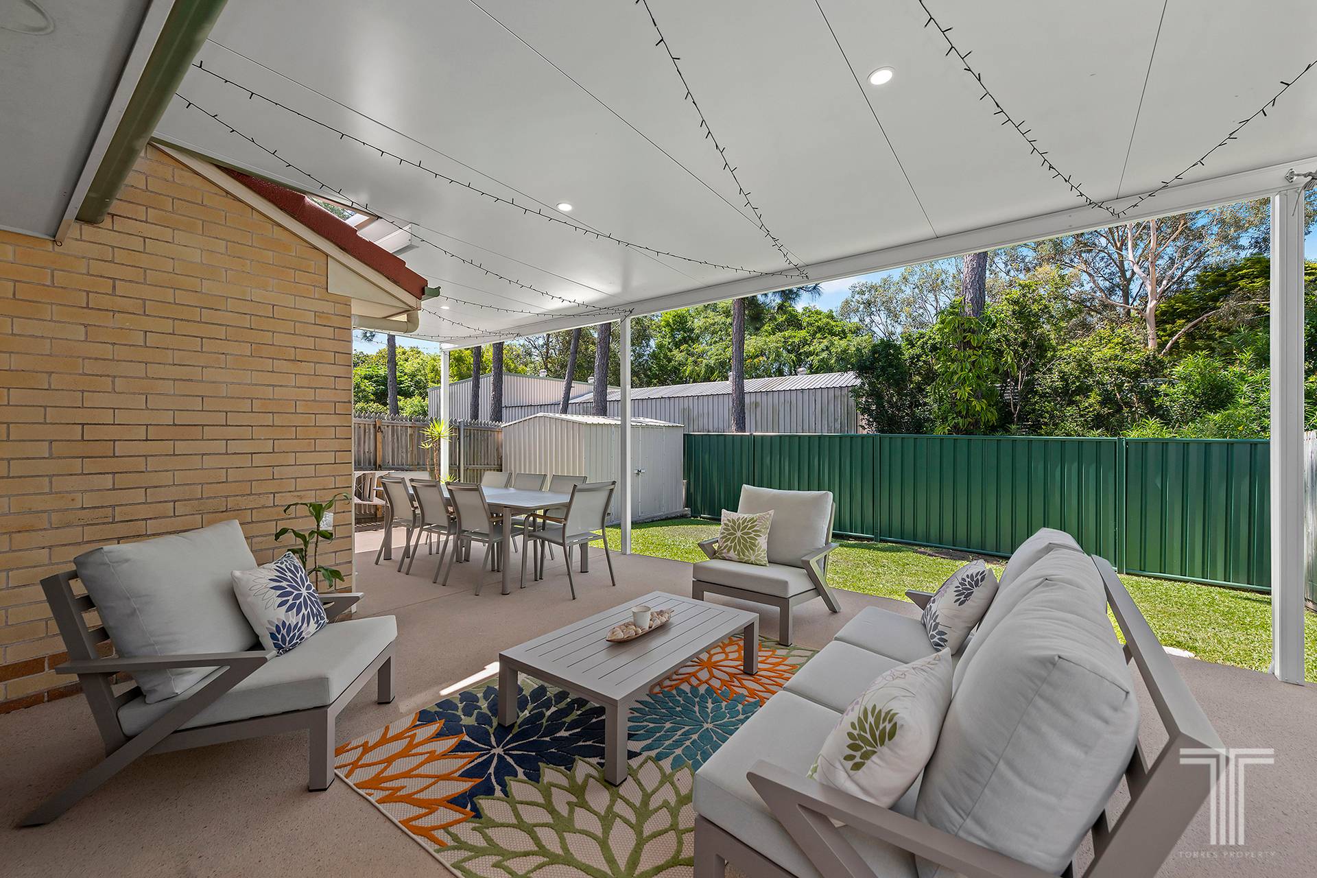 Entertain and unwind amongst the tree-lined outlooks from the expansive alfresco patio, which boasts a flyover roof and a fenced grassed courtyard.