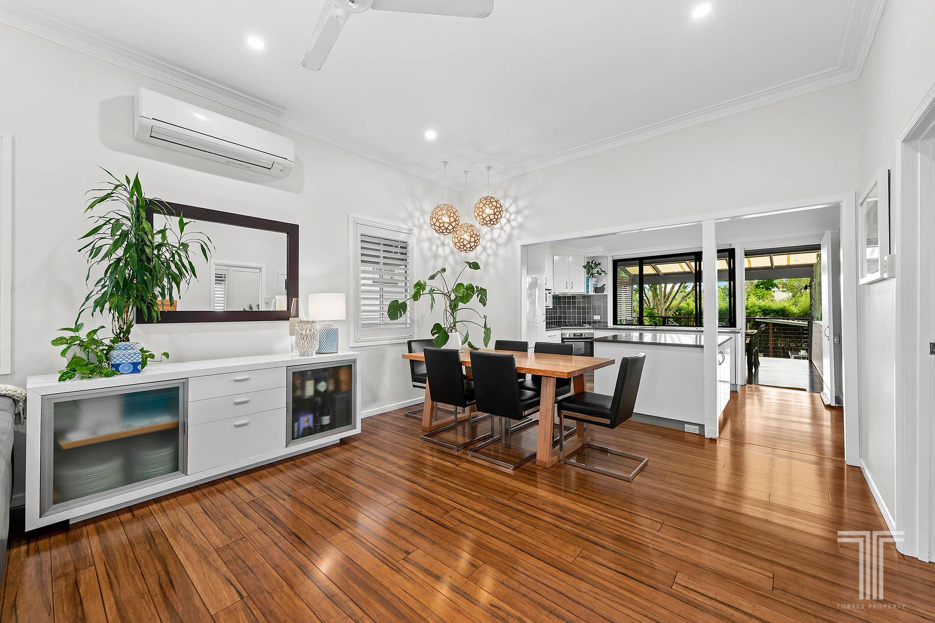 Gleaming timber floors, VJ walls, plantation shutters, and air-conditioning shine across the open layout, which welcomes you with a living and dining area flowing to a kitchen equipped with an island bench, gas stove and stainless steel oven. The functional configuration is destined for gatherings and peaceful moments indoors, and a remarkable refuge awaits outside for alfresco living and entertaining.