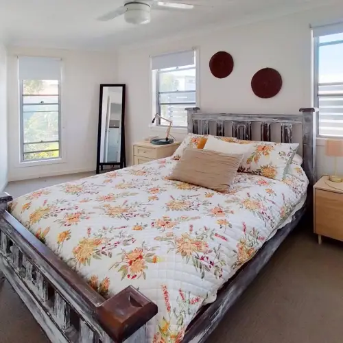 - Two ground-floor bedrooms with built-in robes and ceiling fans