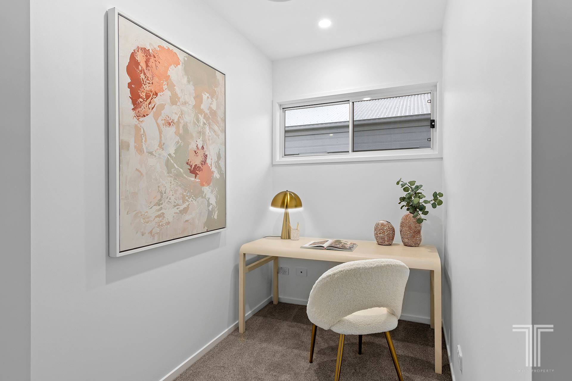 Movie nights await in the media room, and a living retreat resides upstairs alongside a study nook and four bedrooms. Harness the city glimpses from the master suite balcony and enjoy the luxury within the walk-in robe and ensuite with dual vanities and full-height tiles. A second bathroom is upstairs, and a powder room and laundry are below.