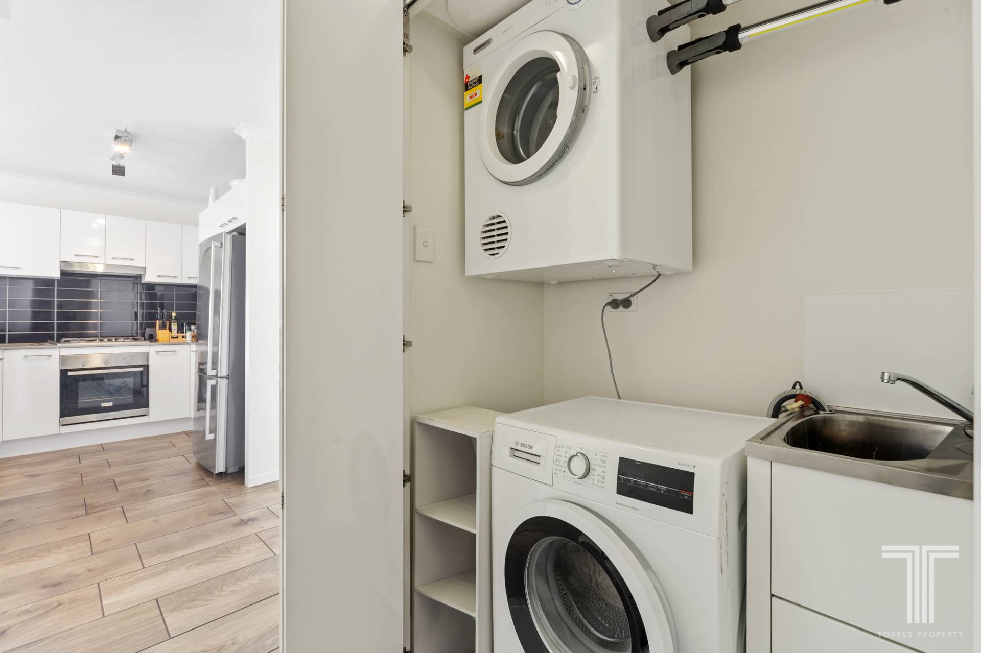 - Separate laundry with wall-mounted dryer