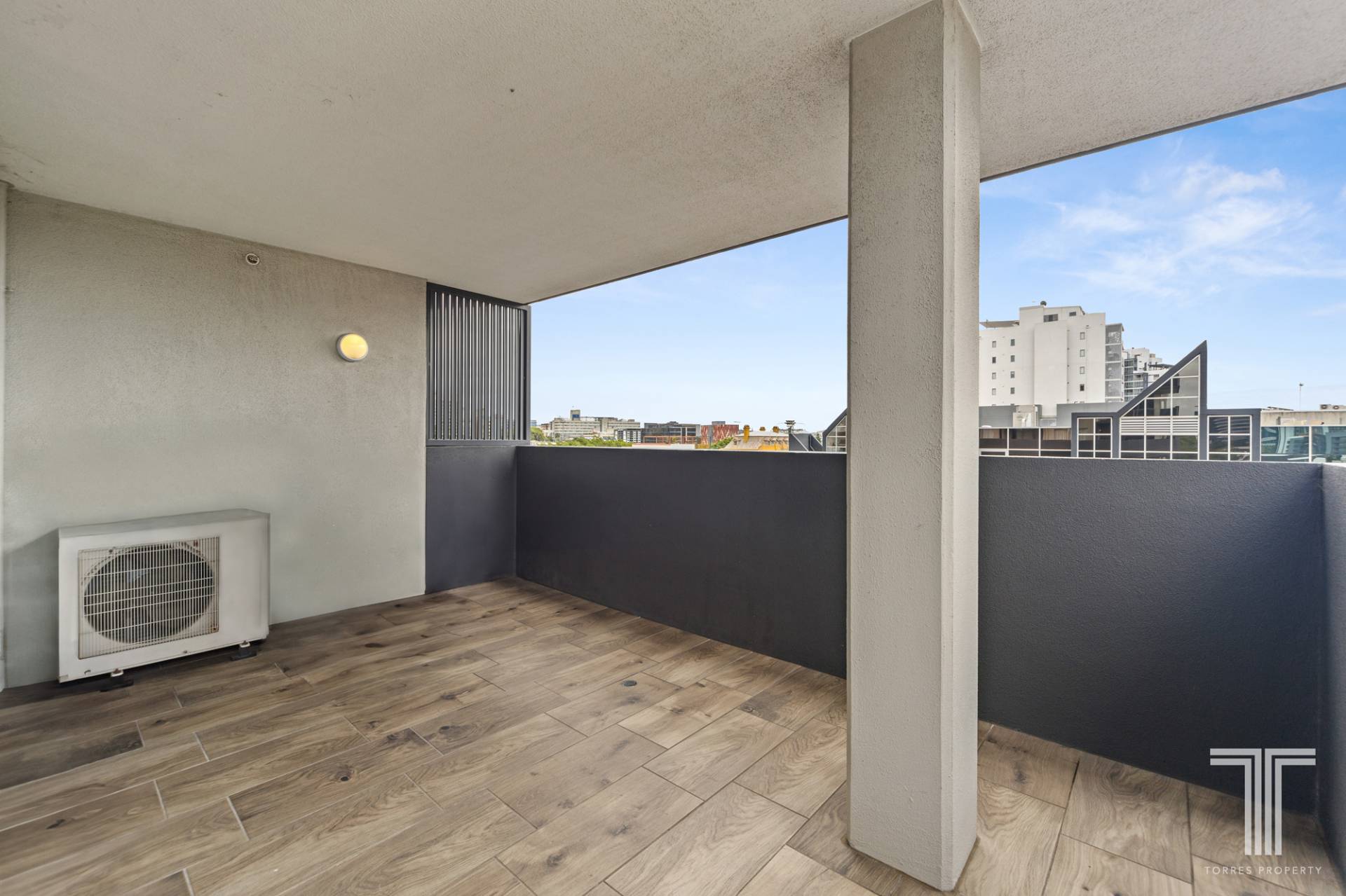 - Private, tiled balcony with city views