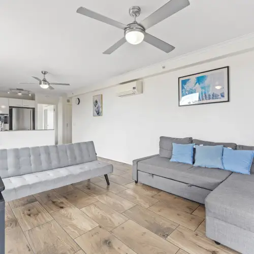 - Timber-look tiled living/dining areas with air-conditioning and ceiling fans