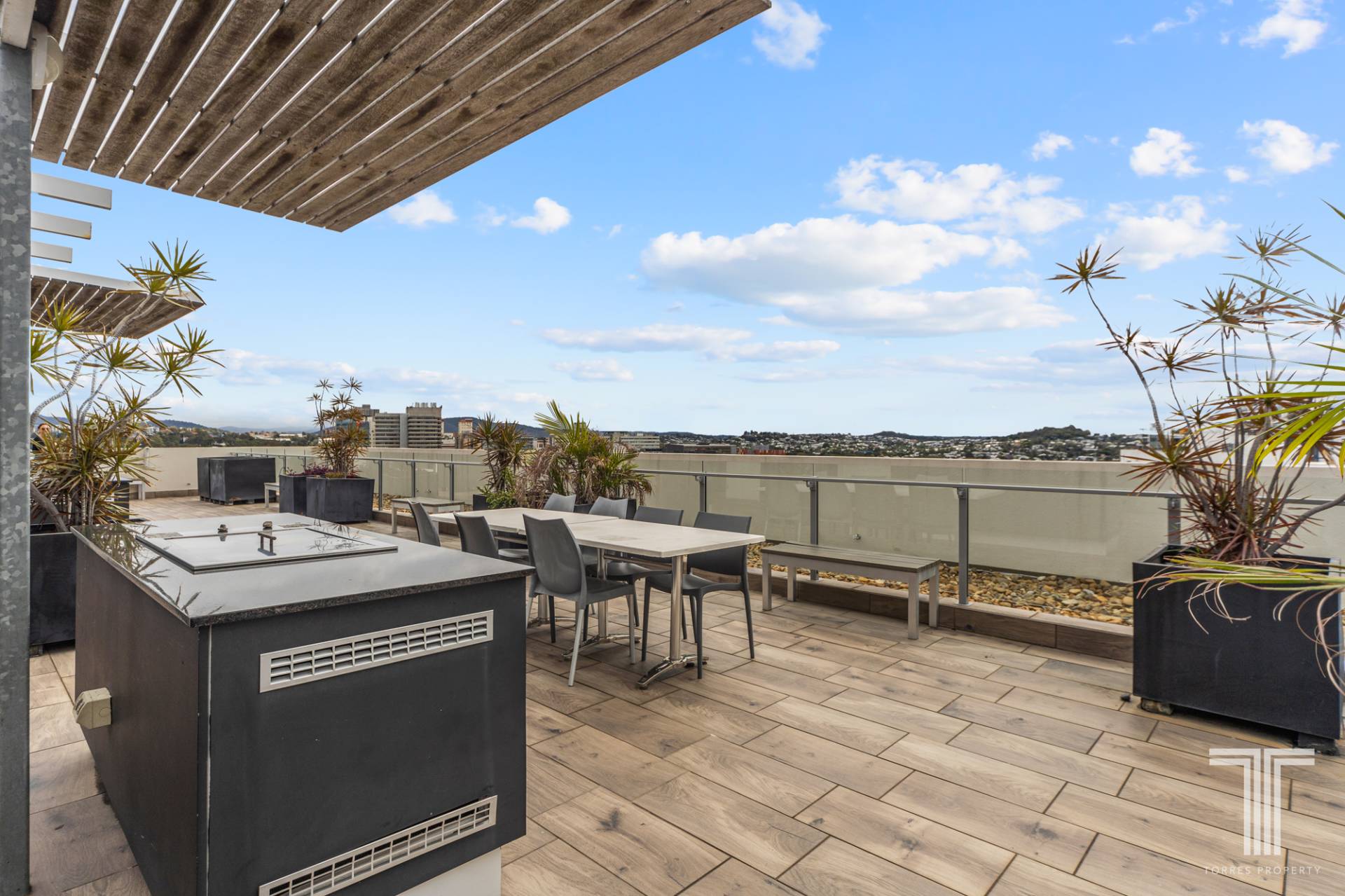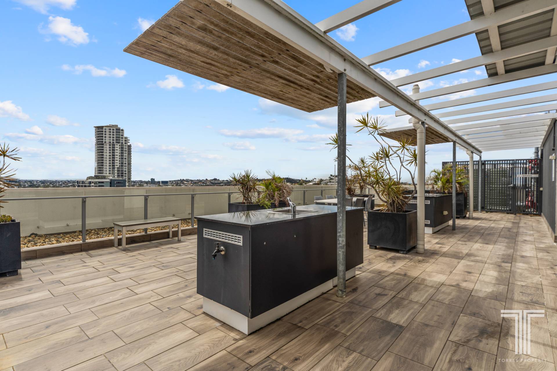 - The building offers amenities such as a rooftop terrace featuring an outdoor TV, dining and BBQ facilities, along with stunning views of the city skyline and beyond.