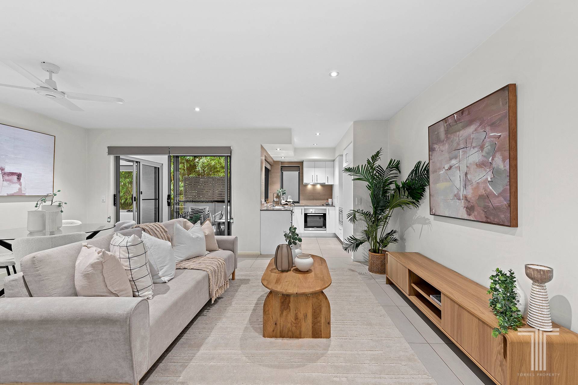 Blending a modern aesthetic and a relaxing leafy backdrop in a private position, this two-bedroom apartment forms a refuge of comfort, convenience and style.
