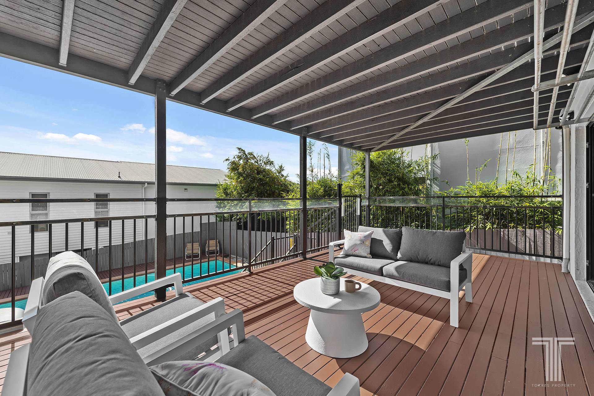 Featuring multiple retreats for lounging, hosting, sharing meals, and watching kids splash and swim, a front verandah and rear deck cater to large-scale entertaining amongst the city views and sunshine, and a lower deck steps out to the shimmering saltwater pool.