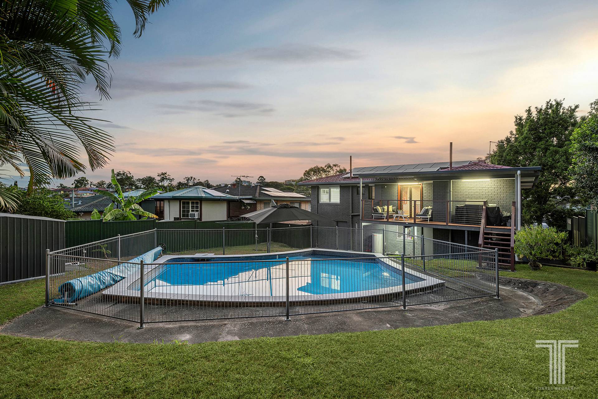 Experience the comfort indoors or enjoy time outside on the elevated deck, capturing scenic views across the swimming pool, backyard and neighbouring treetops. With room to entertain, play with kids and indulge in relaxing swims, this alfresco setting maximises outdoor living in the Queensland sunshine.