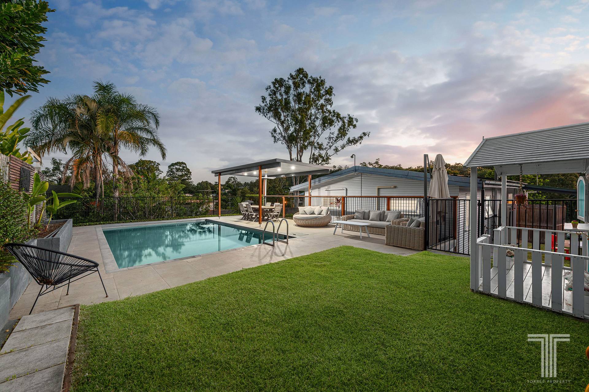 Showcasing an adaptable design with multiple breakout spaces, a renovated kitchen and bathroom, a poolside retreat and a storage shed, every element ensures exceptional comfort across the flexible floor plan.