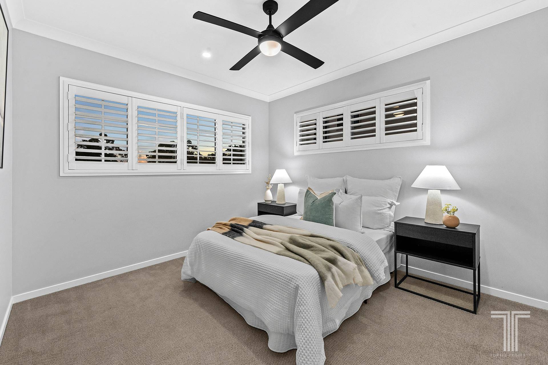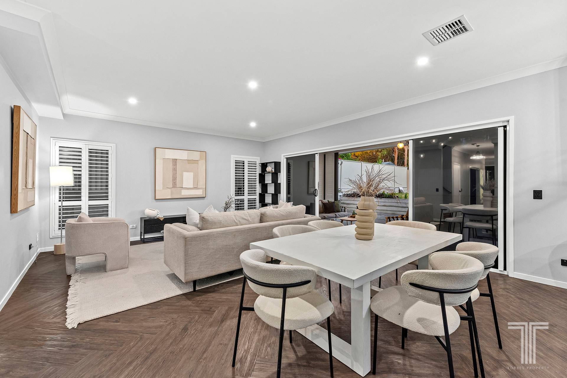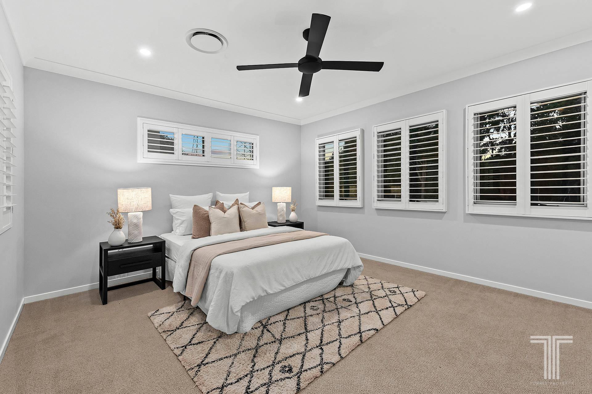 Evoking an alluring atmosphere, step inside where feature herringbone floors, carpeted bedrooms, exquisite tiles, plantation shutters and a hardwood staircase form the basis of the captivating contemporary interiors.