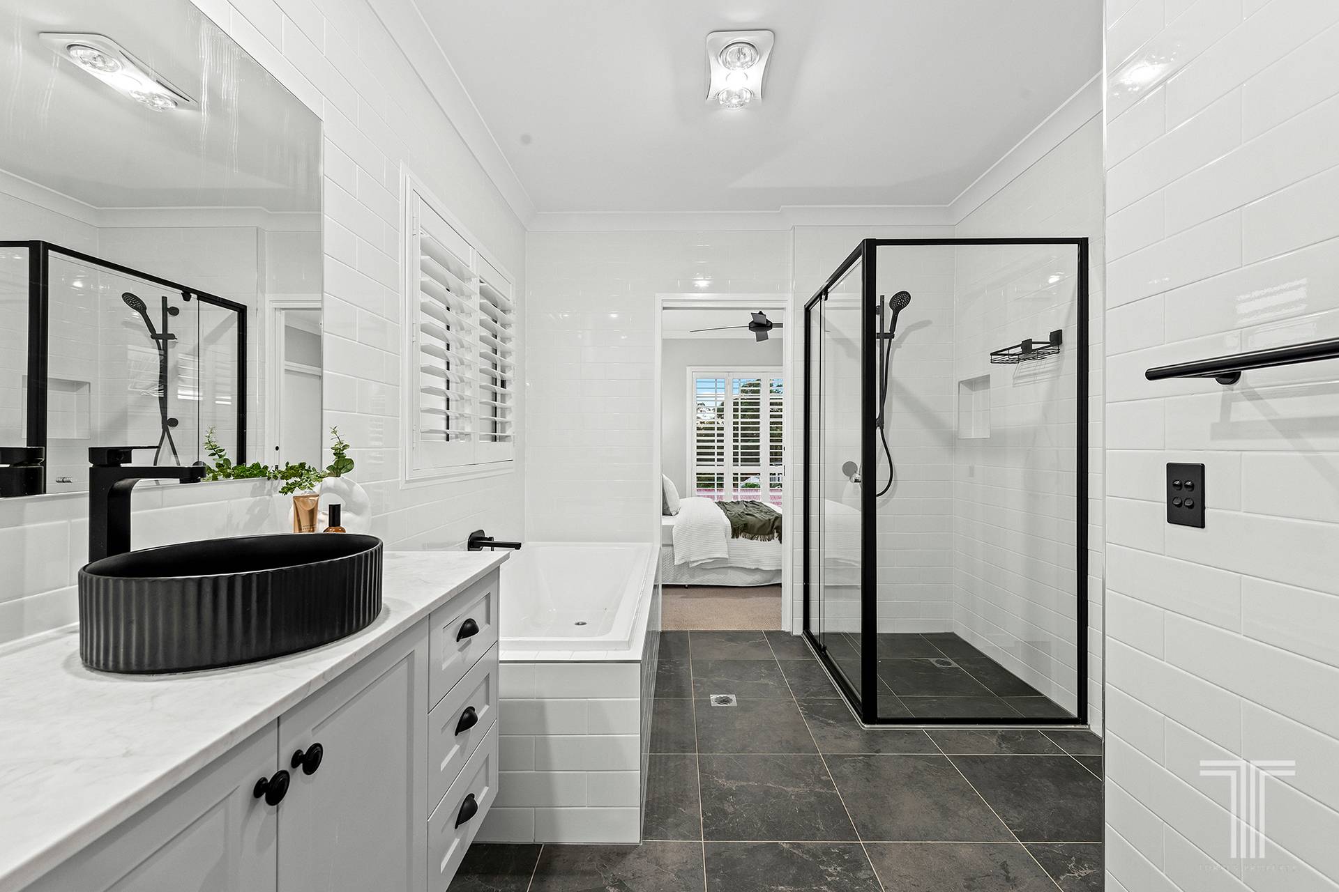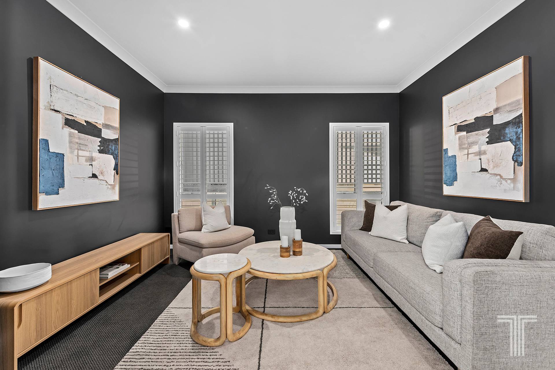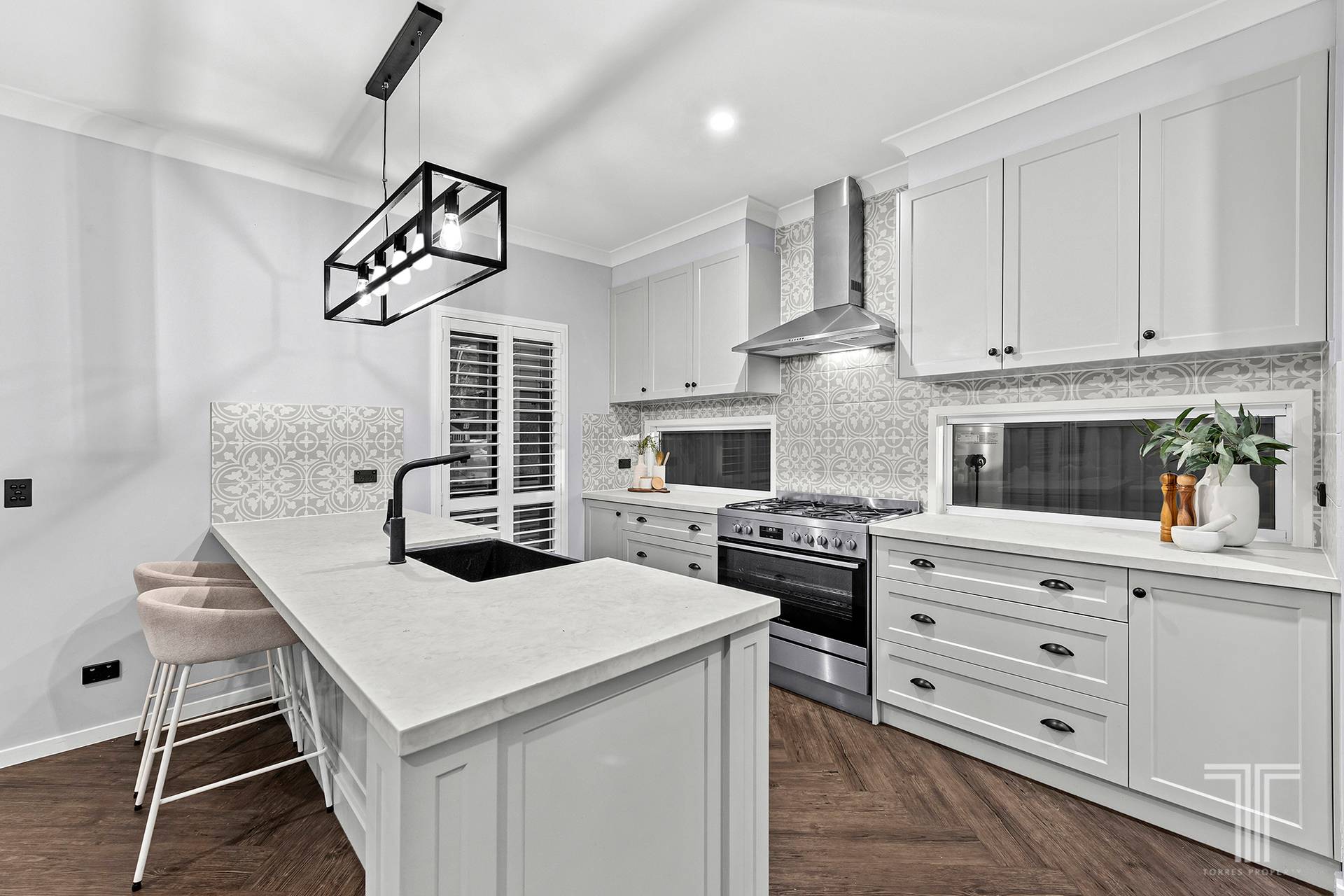 Evoking an alluring atmosphere, step inside where feature herringbone floors, carpeted bedrooms, exquisite tiles, plantation shutters and a hardwood staircase form the basis of the captivating contemporary interiors.
