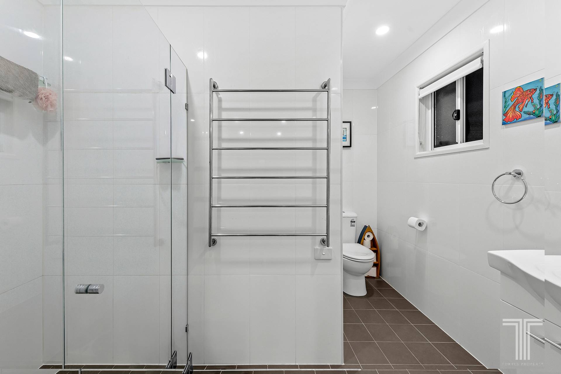 Four bedrooms, two bathrooms and a laundry are also featured on this lower level, including a master suite with dual wardrobes and an ensuite for the masters of the home.