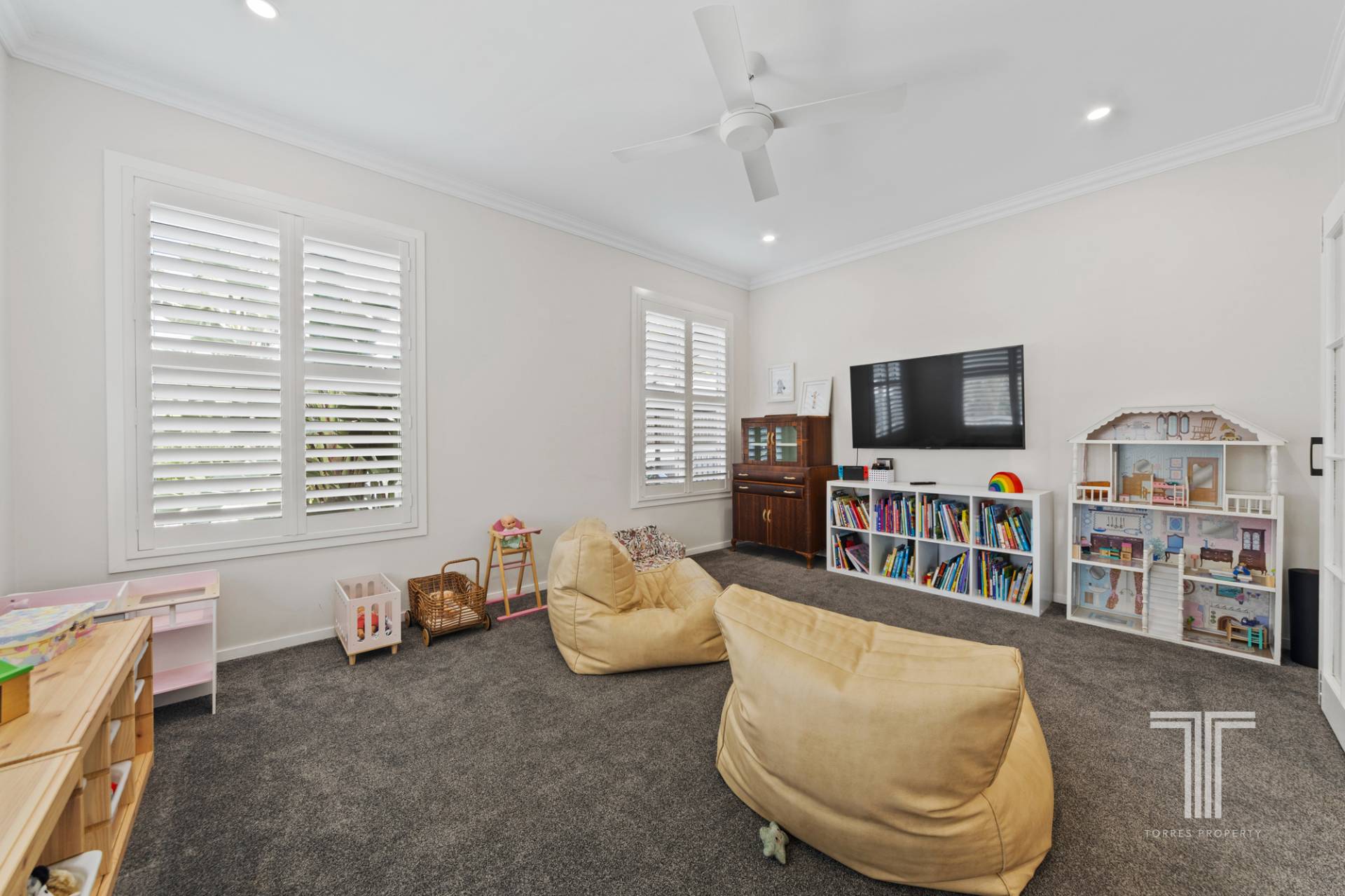 Designed for the whole family to enjoy, the top level includes a living area, four bedrooms and two bathrooms. The spacious master bedroom is lavishly styled with a walk-in robe and a luxe ensuite complete with a dual vanity and dual rain showers.