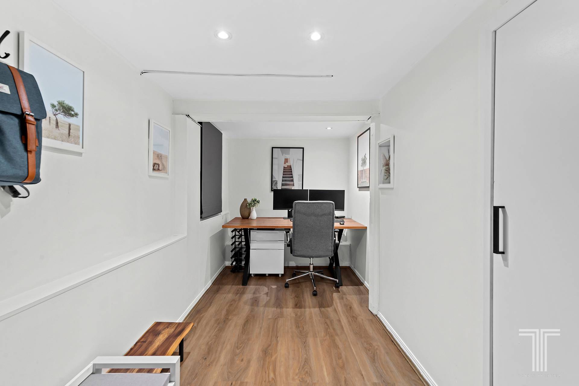 Move effortlessly across the upper floor, where an open living and dining area extends into the well-appointed kitchen with a stainless steel dishwasher and flows to a private room, perfect for a home office or second living retreat.