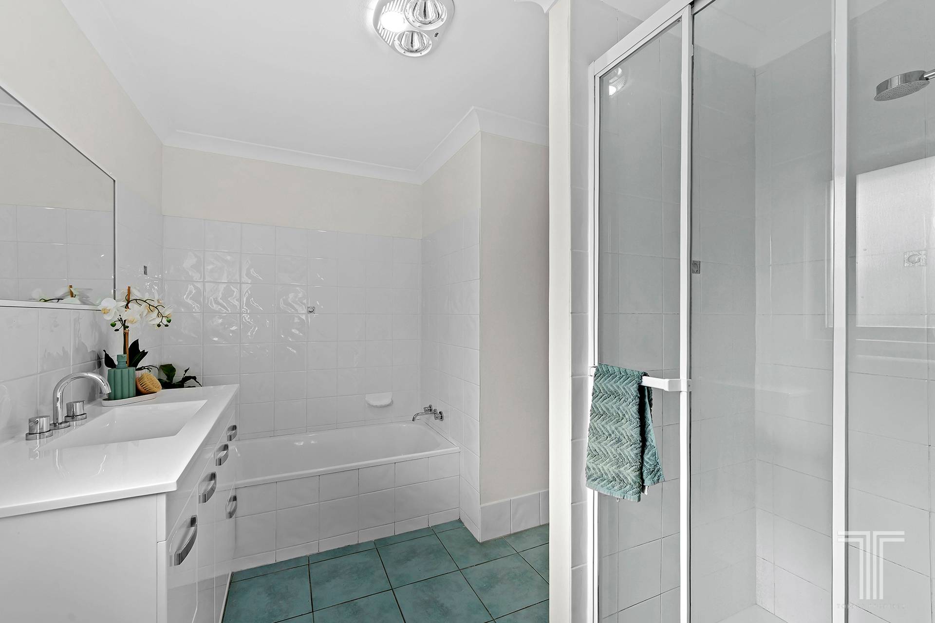 Timber floors adorn the interiors and welcome you into the living, dining and meals areas upstairs, which surround the central kitchen equipped with timber cabinetry, a breakfast bar, a Bosch dishwasher and a gas cooktop.