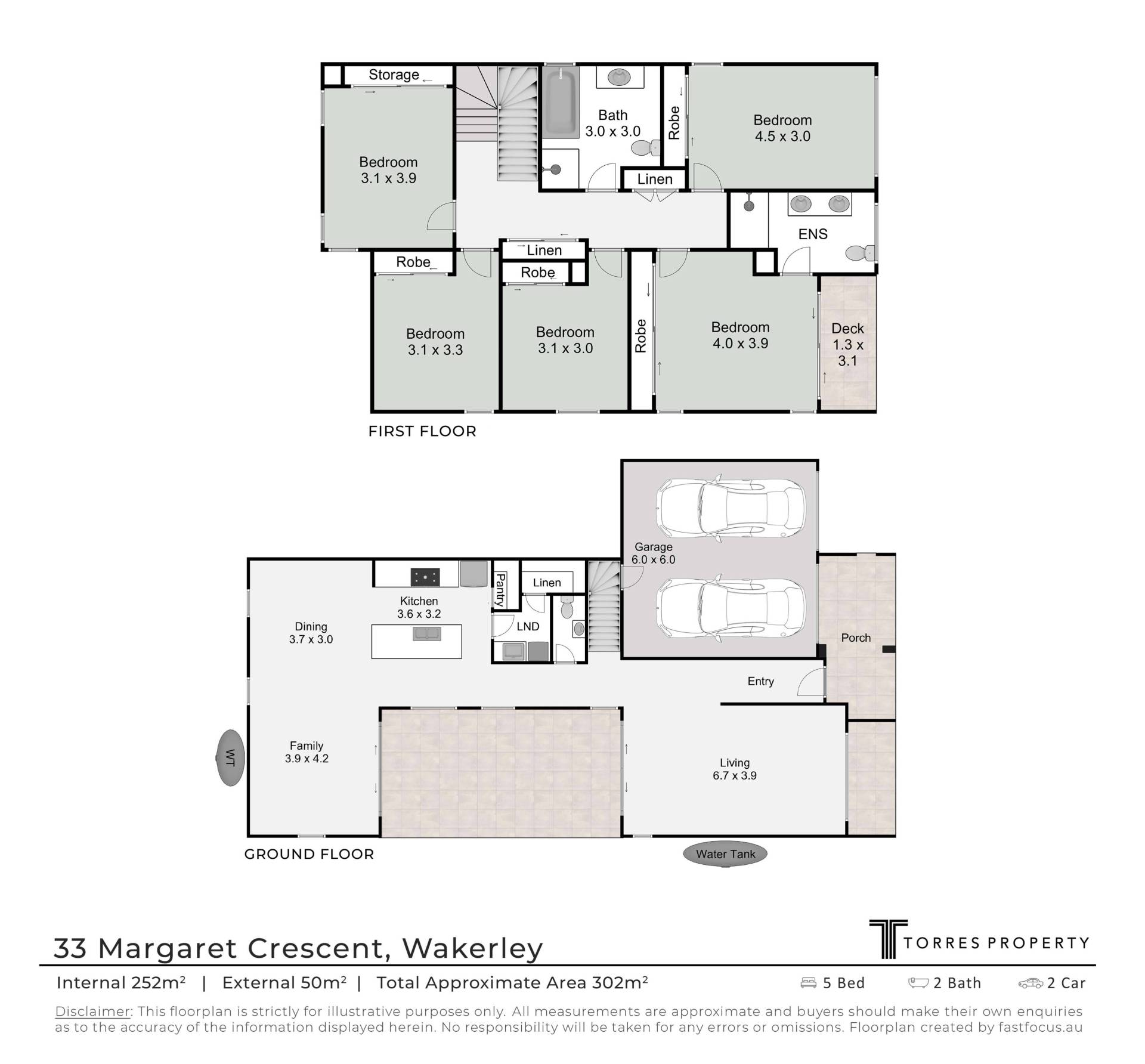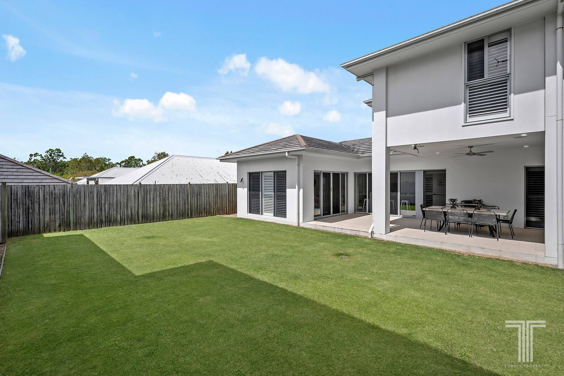 Boasting five generously sized bedrooms on the second level, including a private master suite finished with an ensuite and private balcony, this home is ideal for established families or those looking to start one. The open-plan living and dining areas are flooded with natural light, creating an inviting and airy atmosphere, completed with plantation shutters. The well-appointed kitchen is equipped with quality appliances, ample storage, and a functional layout, perfect for everyday living and entertaining.