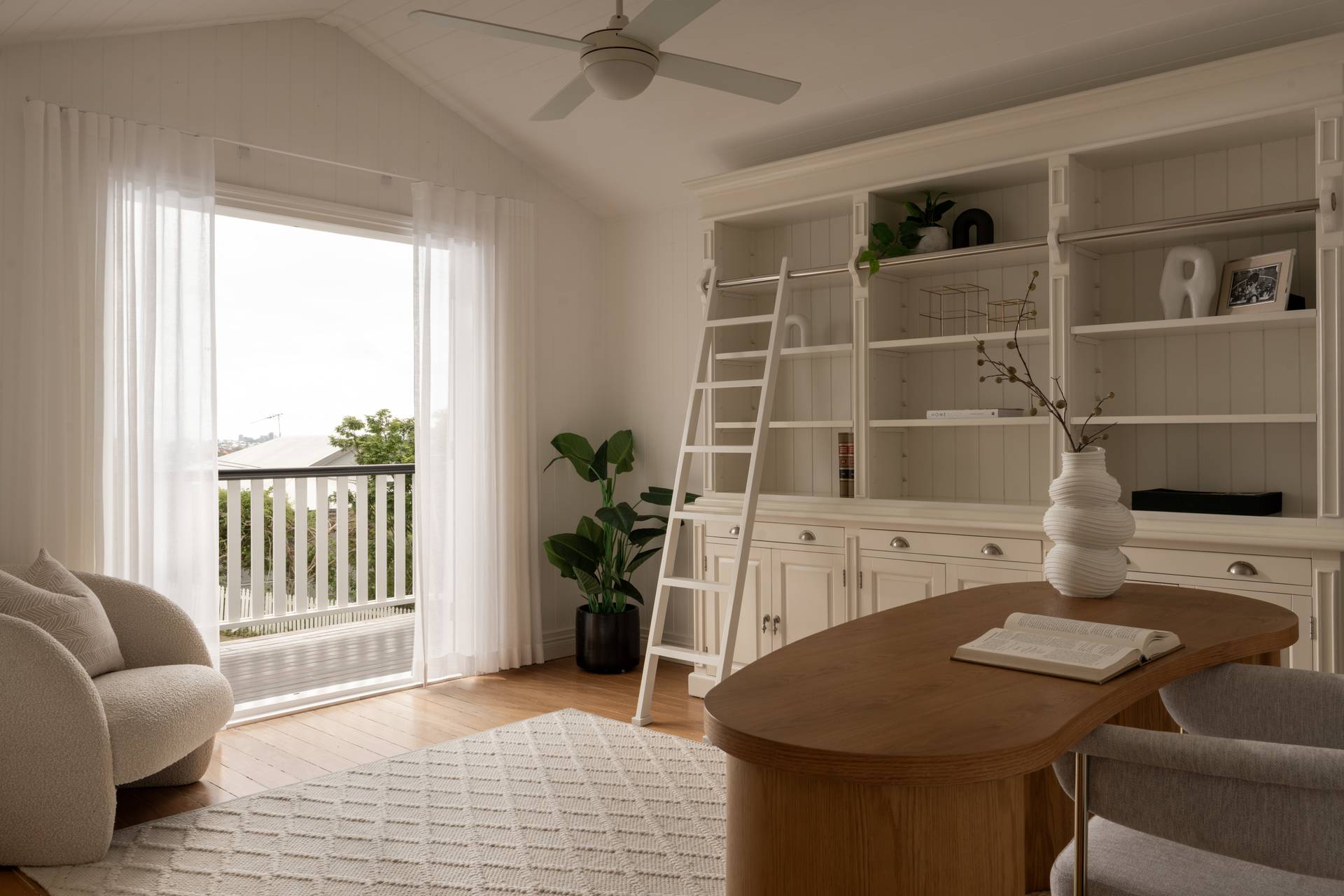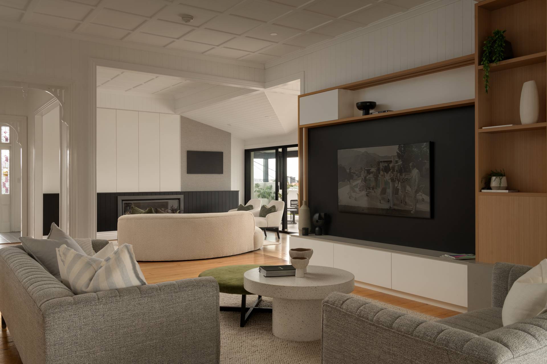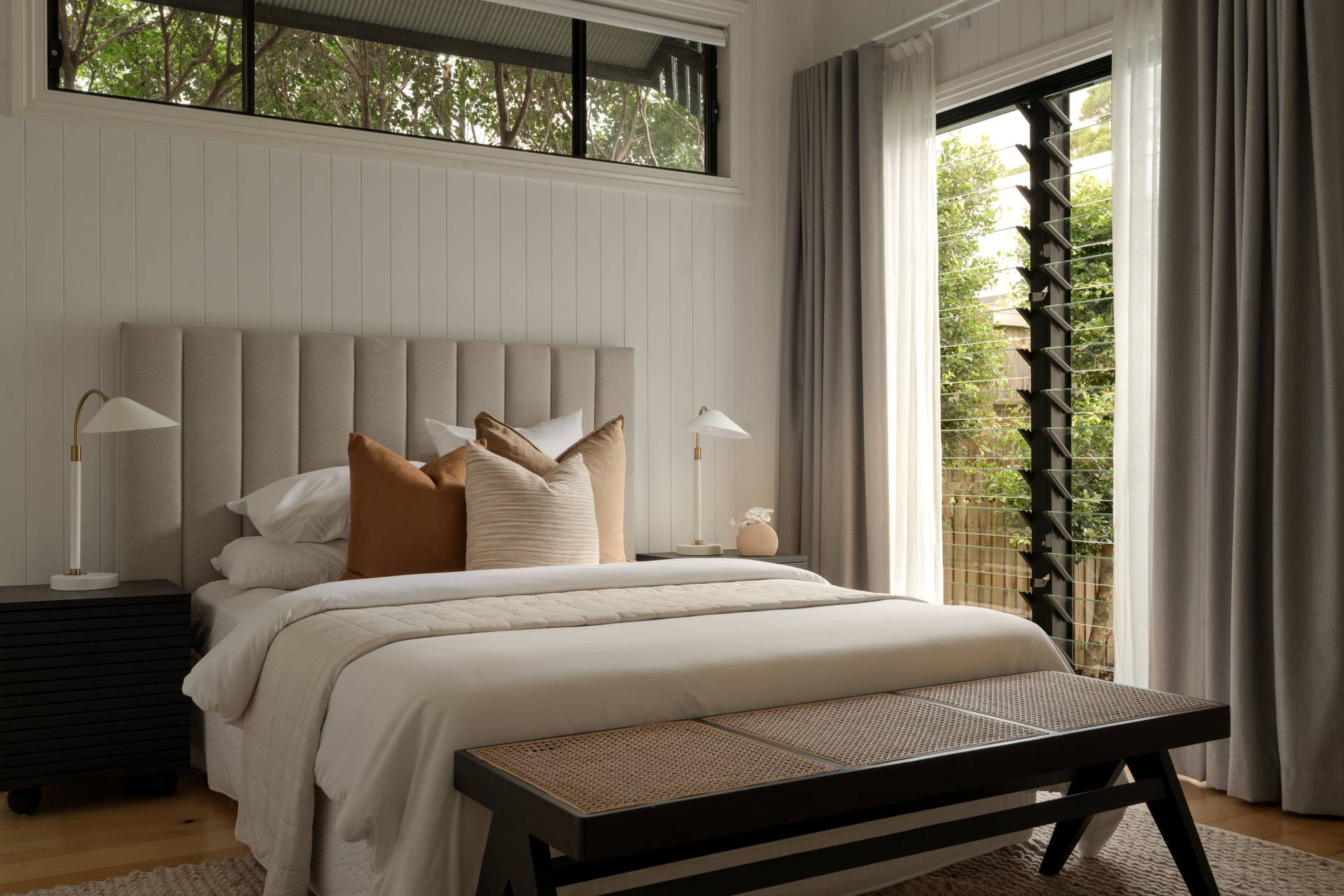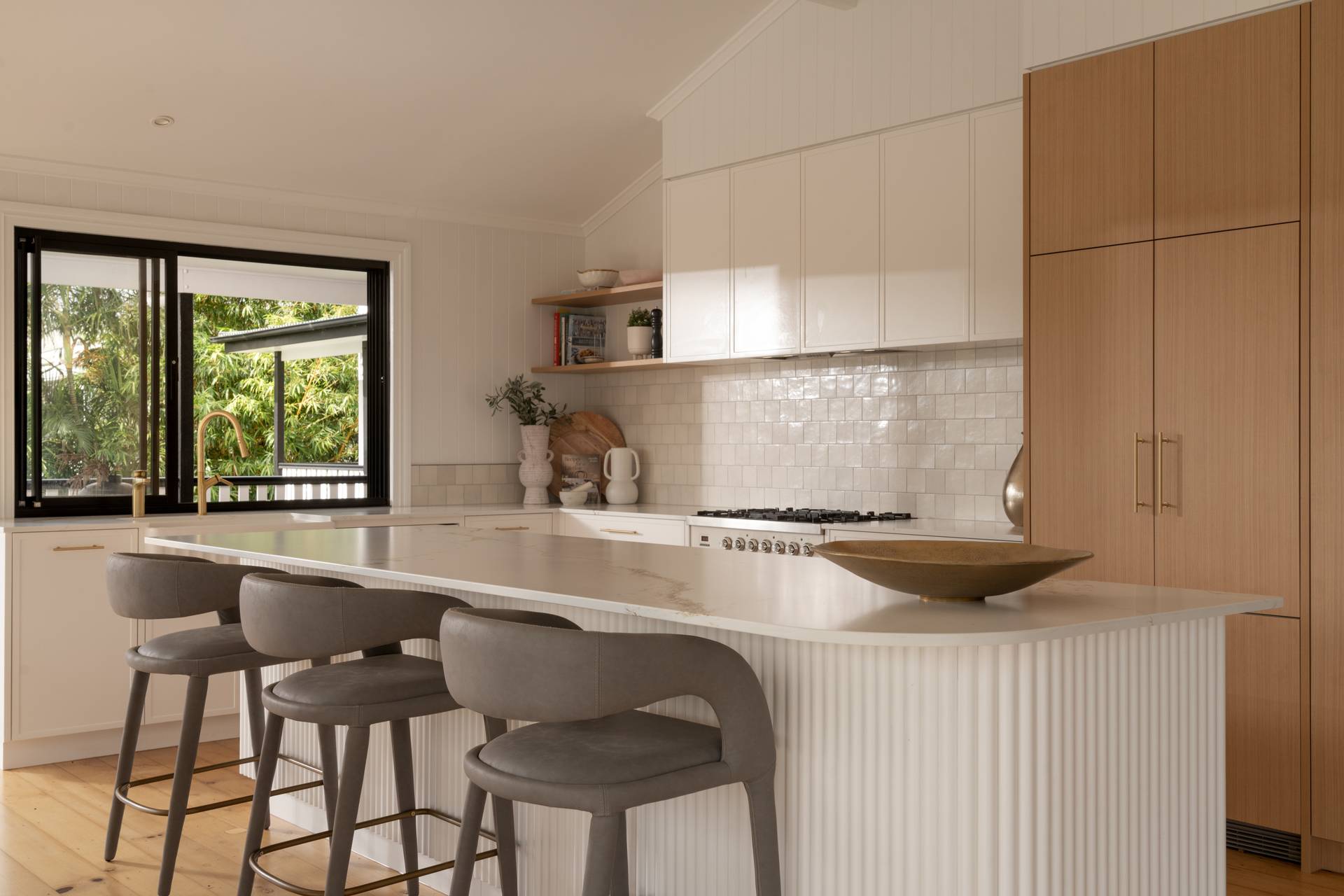The curated palette sees custom 2pac cabinetry, Woodmatt accents and traditional timber floors that accent the 3m ceilings, leadlight windows and French doors.