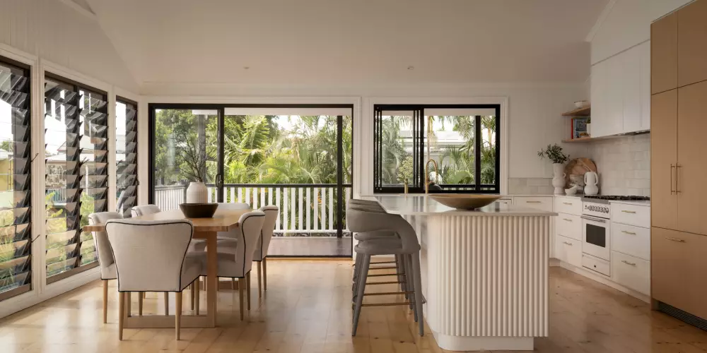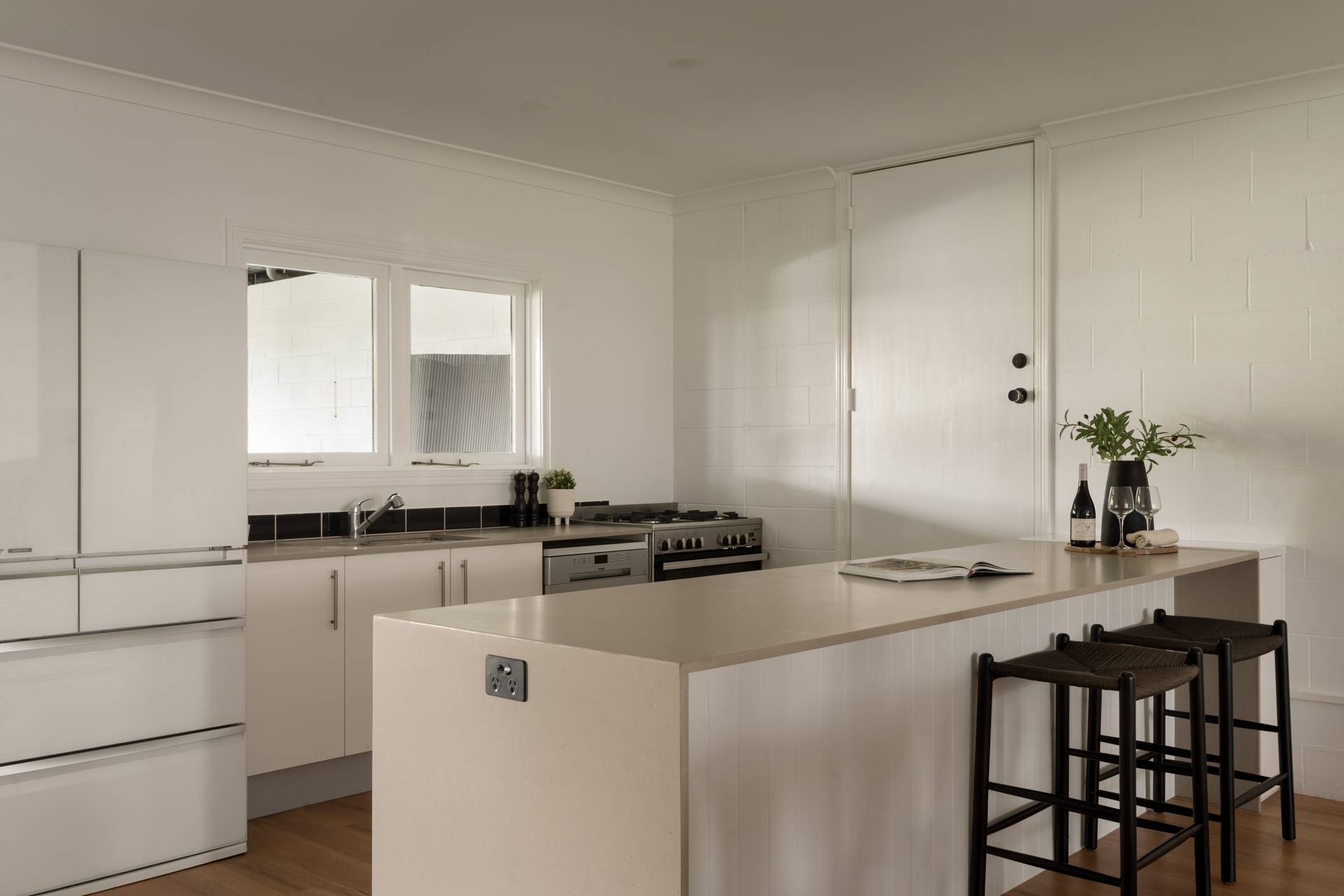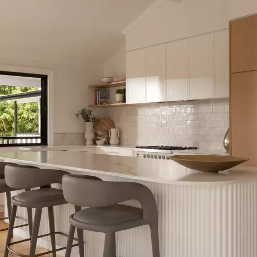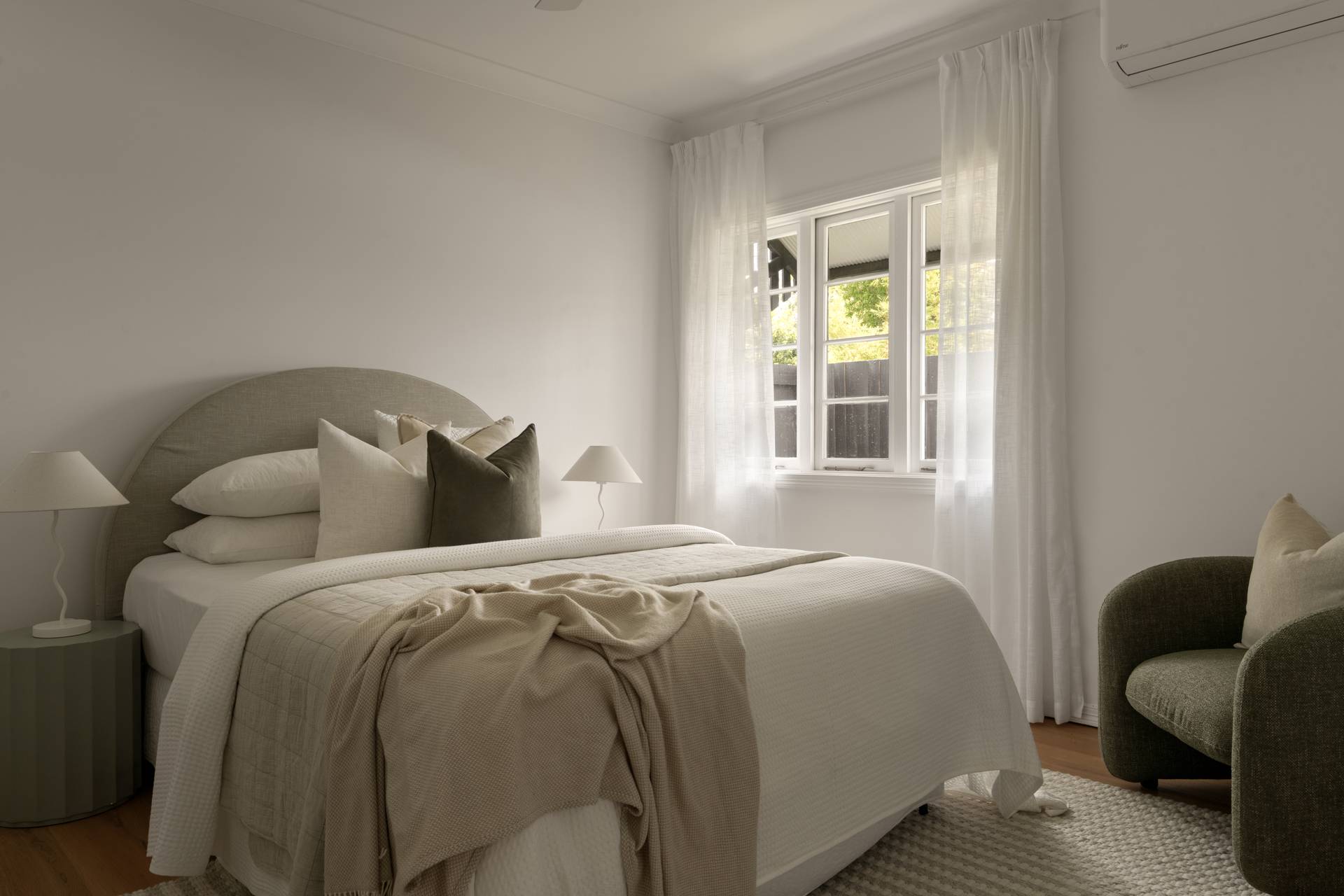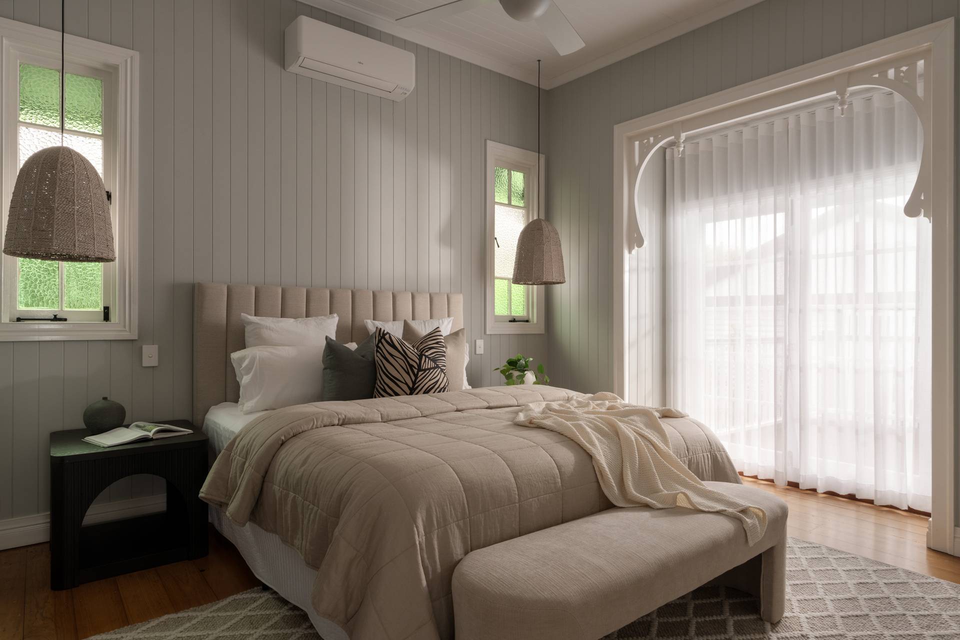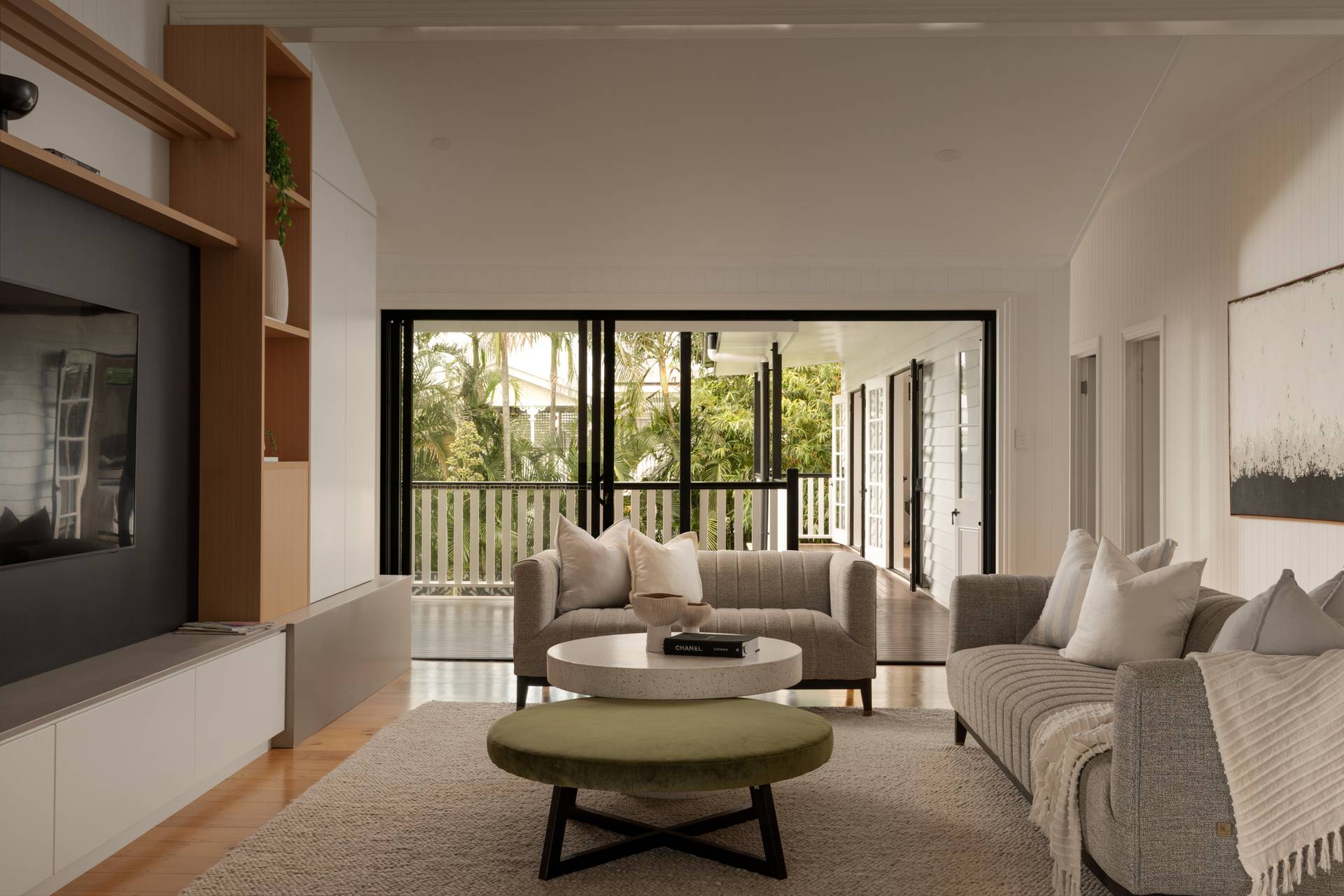 The curated palette sees custom 2pac cabinetry, Woodmatt accents and traditional timber floors that accent the 3m ceilings, leadlight windows and French doors.