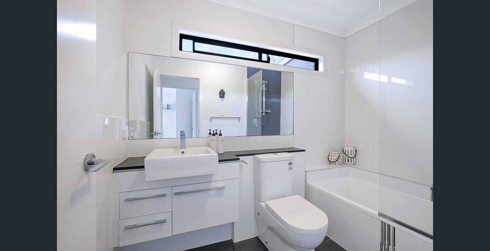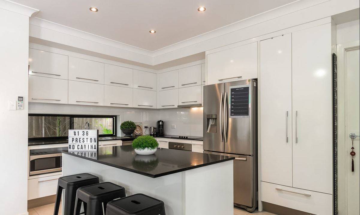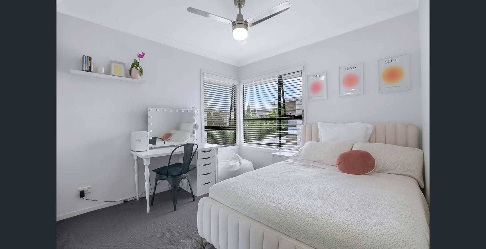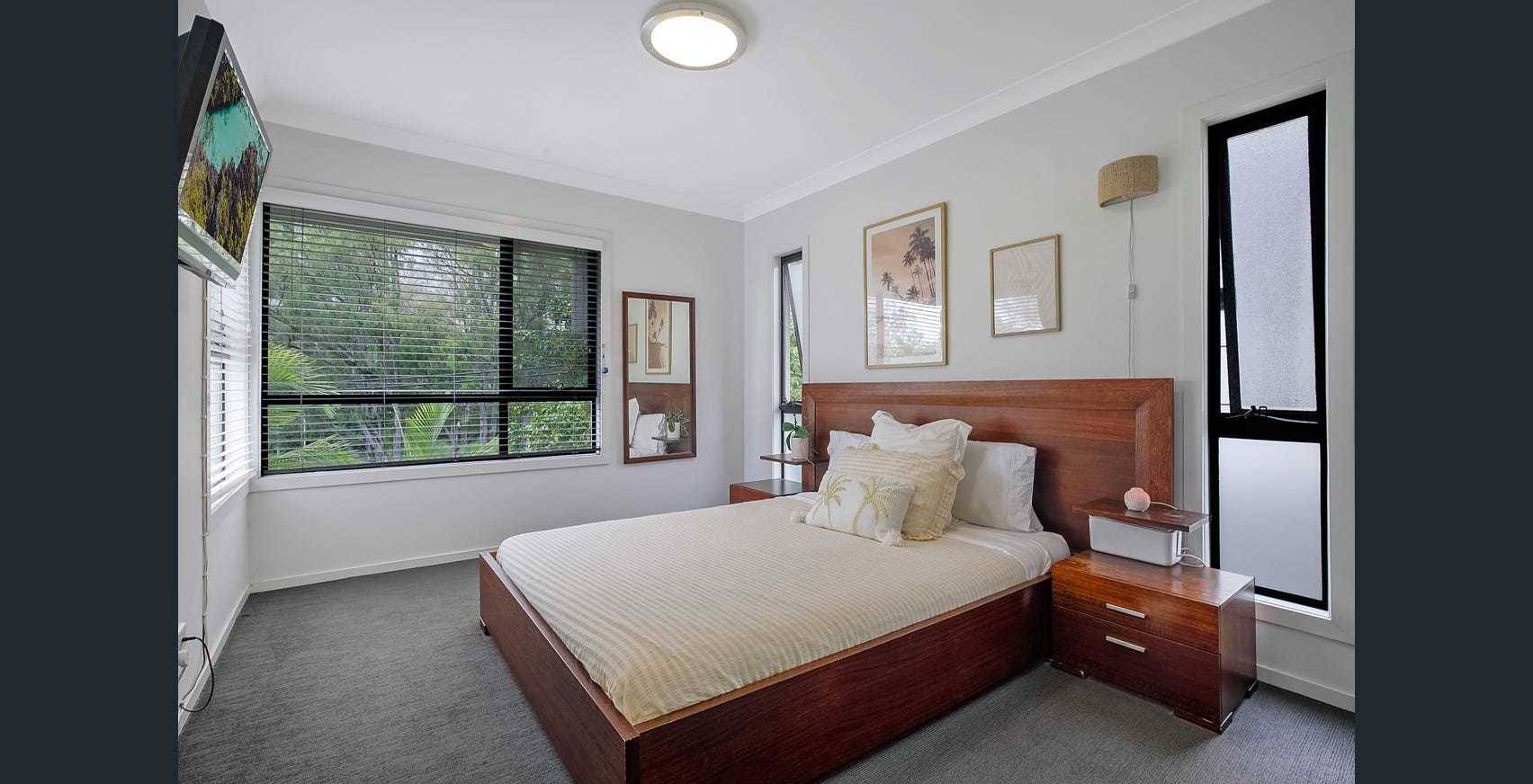 - Sleek finishes, stone benchtops, tiled floors, carpeted bedrooms