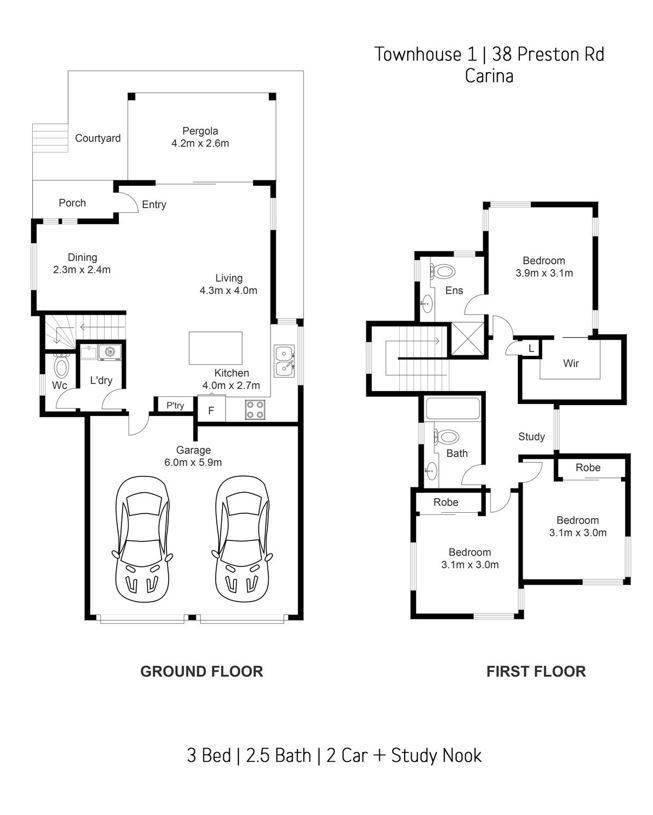 Three bedrooms with built-in robes (Master with a Walk In!) are privately positioned upstairs. The master bedroom includes a large ensuite, a second bathroom services the rest of the floor, and a large powder room is on the ground living level. The study nook also offers a perfect workspace for WFH days or homework time for the kids.