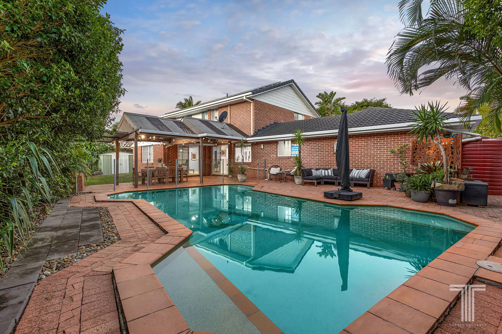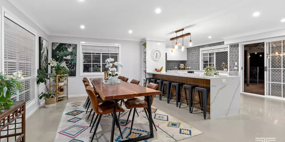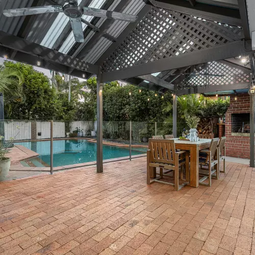 Embrace the Queensland sunshine and lifestyle outdoors, where a large undercover patio rests by the grassy lawns and in-ground swimming pool. Presenting an idyllic setting for summer days by the water, winter nights by the outdoor fireplace, and weekend sports and games, you will love the endless enjoyment this alfresco hideaway will bring.