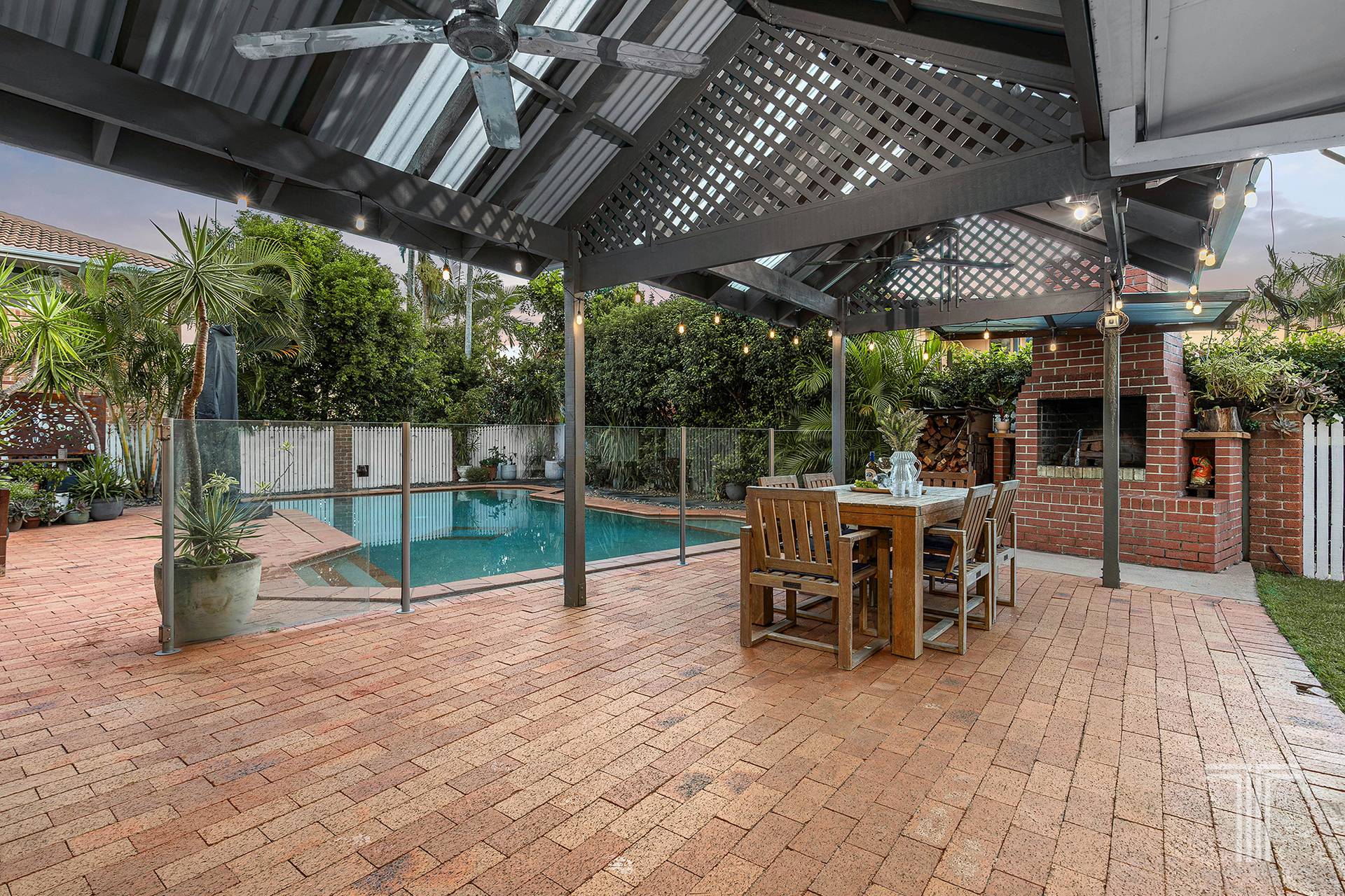 - Ceiling fans + outdoor fireplace