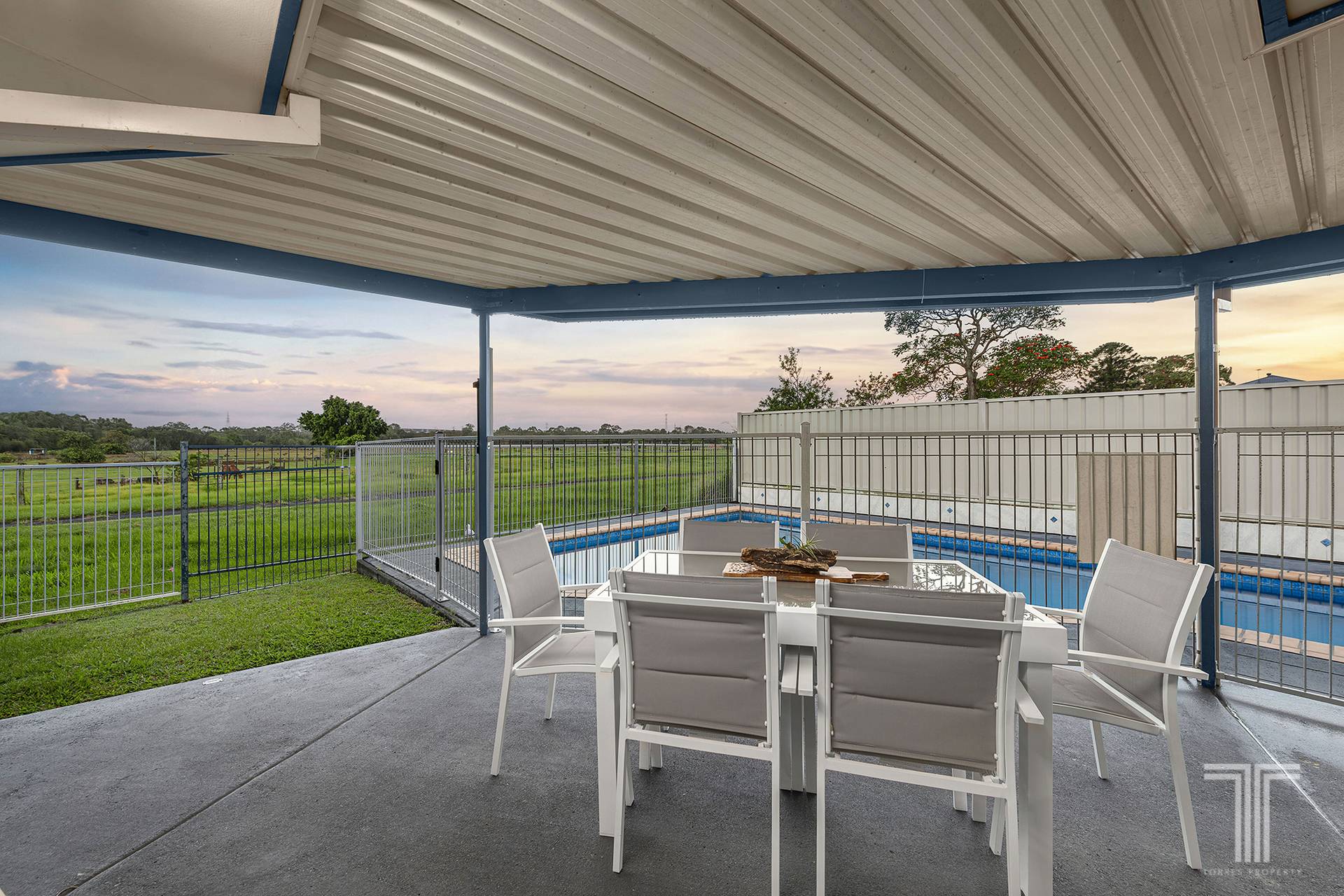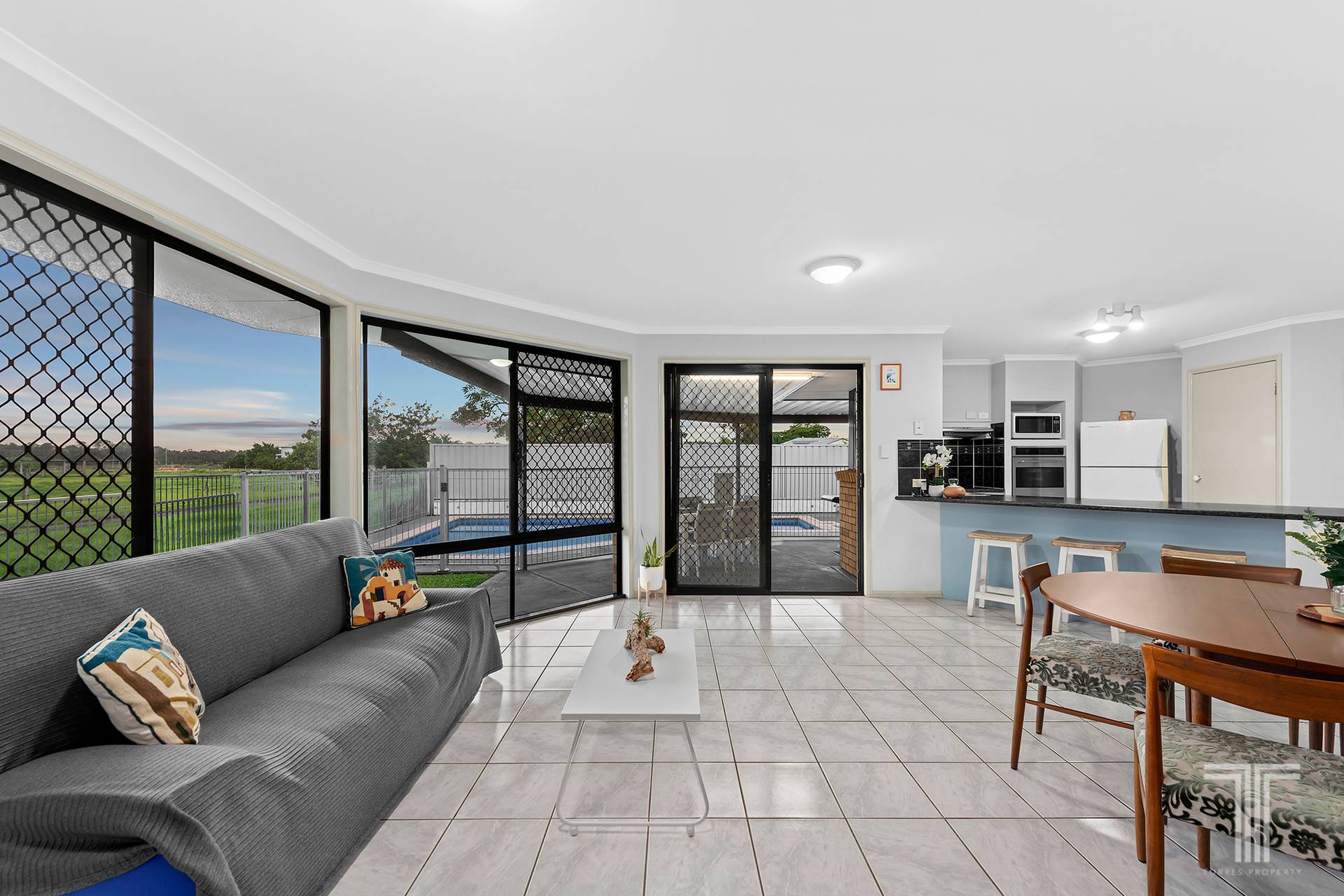 Admire the tranquil greenery and watch the neighbouring horses from the undercover patio and sunlit swimming pool, which form retreats for unwinding and entertaining amid the grassy lawns and wide-open spaces of the surrounding acreage.