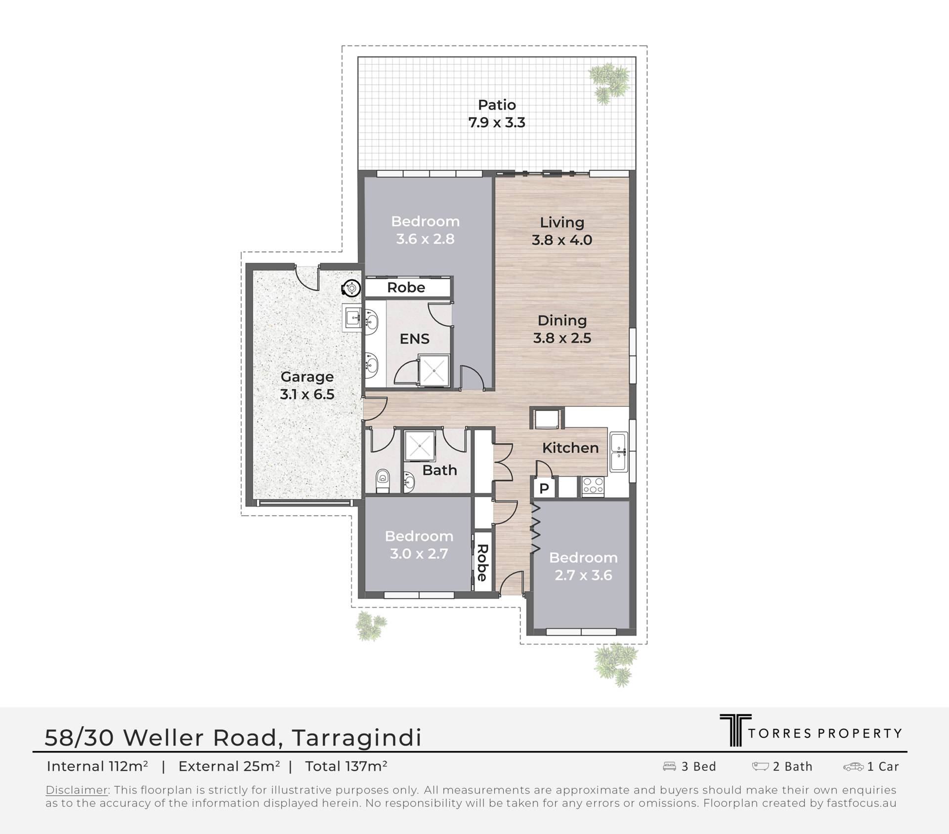 Disclaimer: Whilst every care is taken in the preparation of the information contained in this marketing, Torres Property will not be held liable for any errors in typing or information. All interested parties should rely upon their own enquiries in order to determine whether or not this information is in fact accurate.