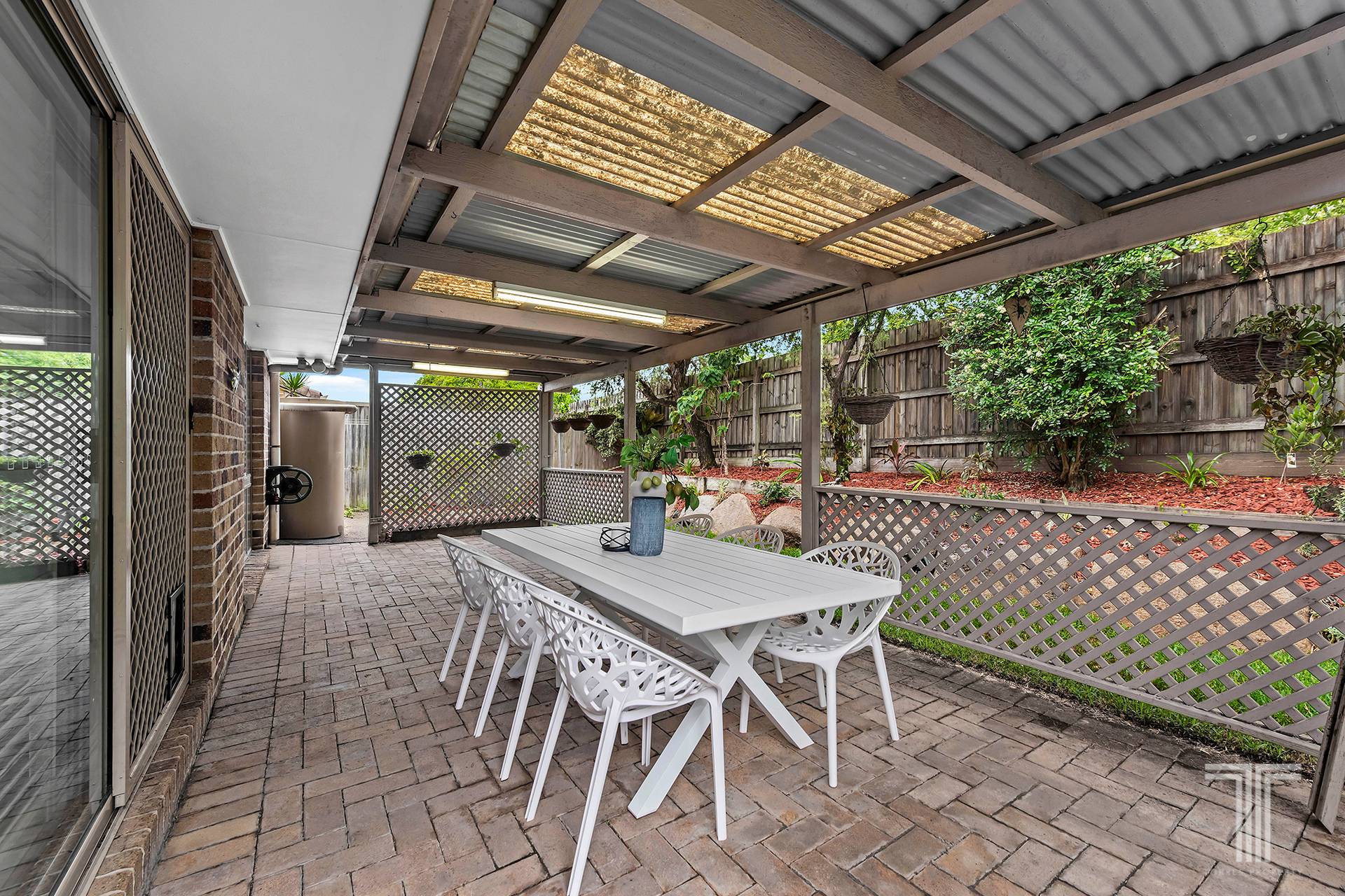A garden retreat beckons you outdoors to the large covered courtyard, which rests peacefully amongst the lush lawns and greenery for relaxed entertaining outdoors.