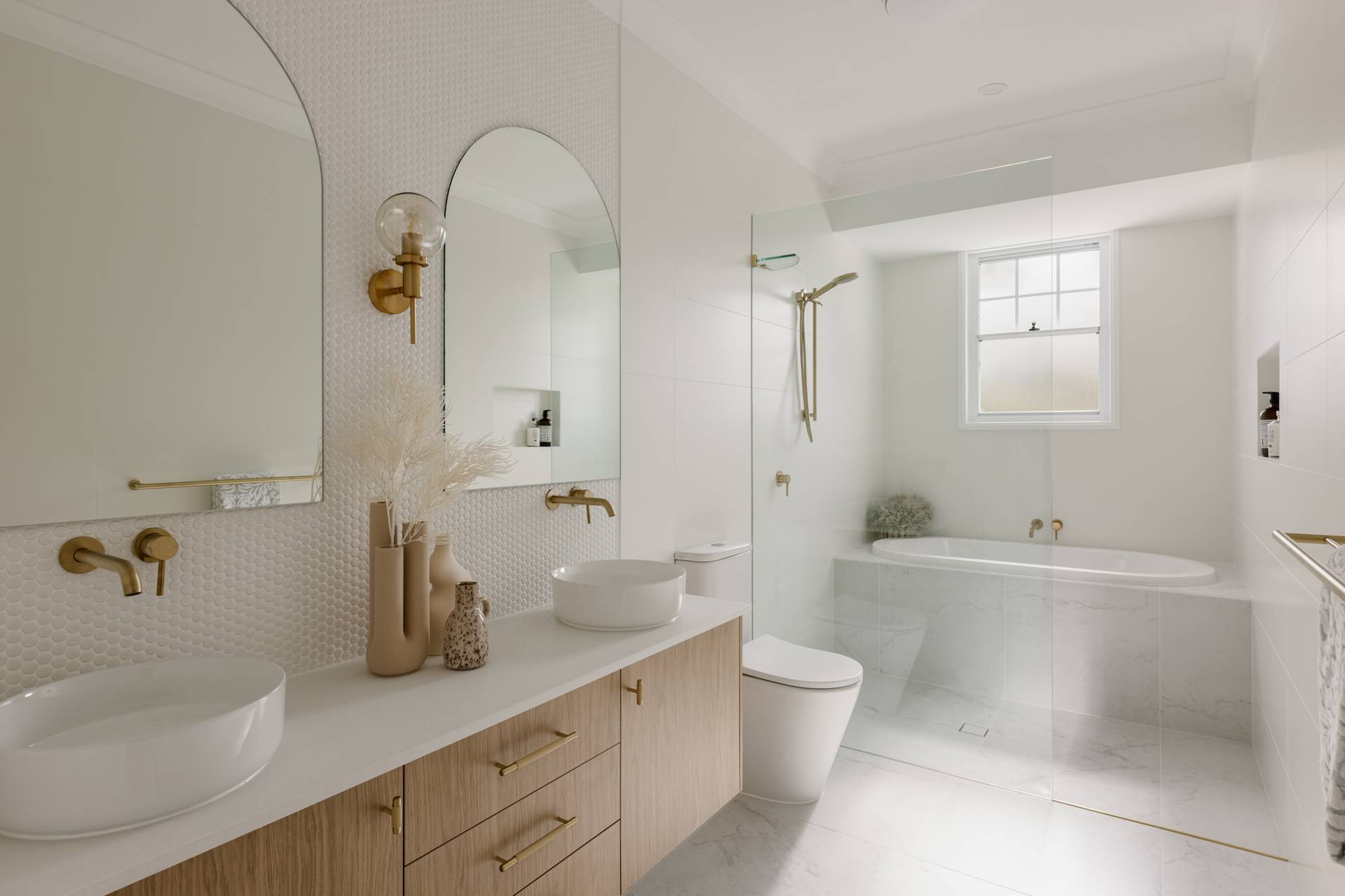 - Mudroom/laundry with stone benchtops & brushed brass tapware
