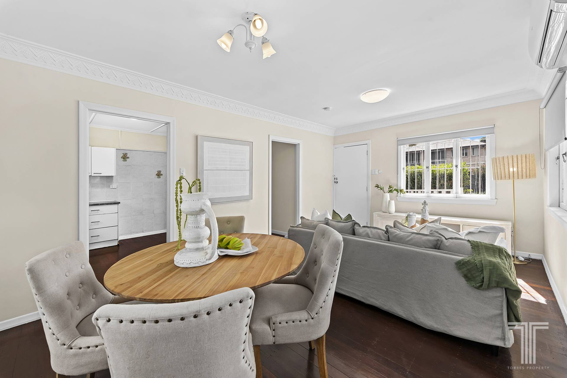 Offering comfortable and practical living, the house is neatly presented with high ceilings, decorative cornices and timber floors. Natural light flows across the single-level layout, which greets you with an air-conditioned living/dining area and a functional kitchen with plentiful bench space, ample storage and a freestanding cooker.
