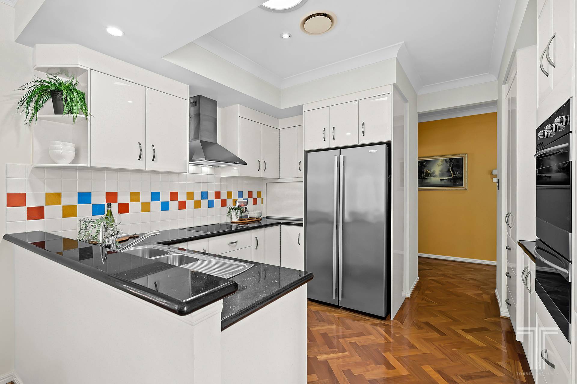 Showcasing Spanish influence and a northern aspect, the timeless design elevates your living experience and embraces warmth with its interior palette and radiant sunshine. Inviting the outdoors in, this influx of natural light filters through plantation shutters, illuminating the gorgeous herringbone parquetry flooring and ornate cornices.